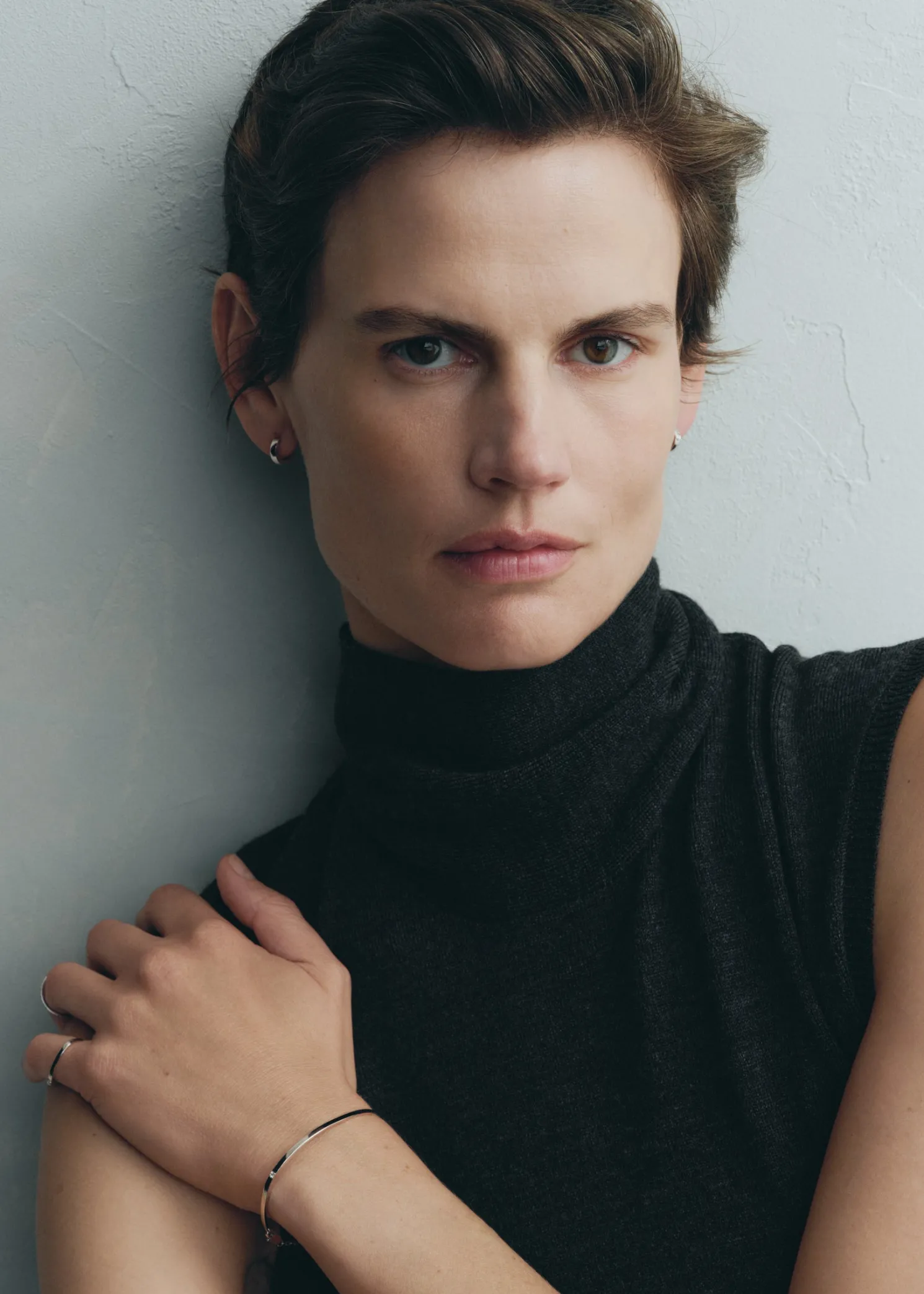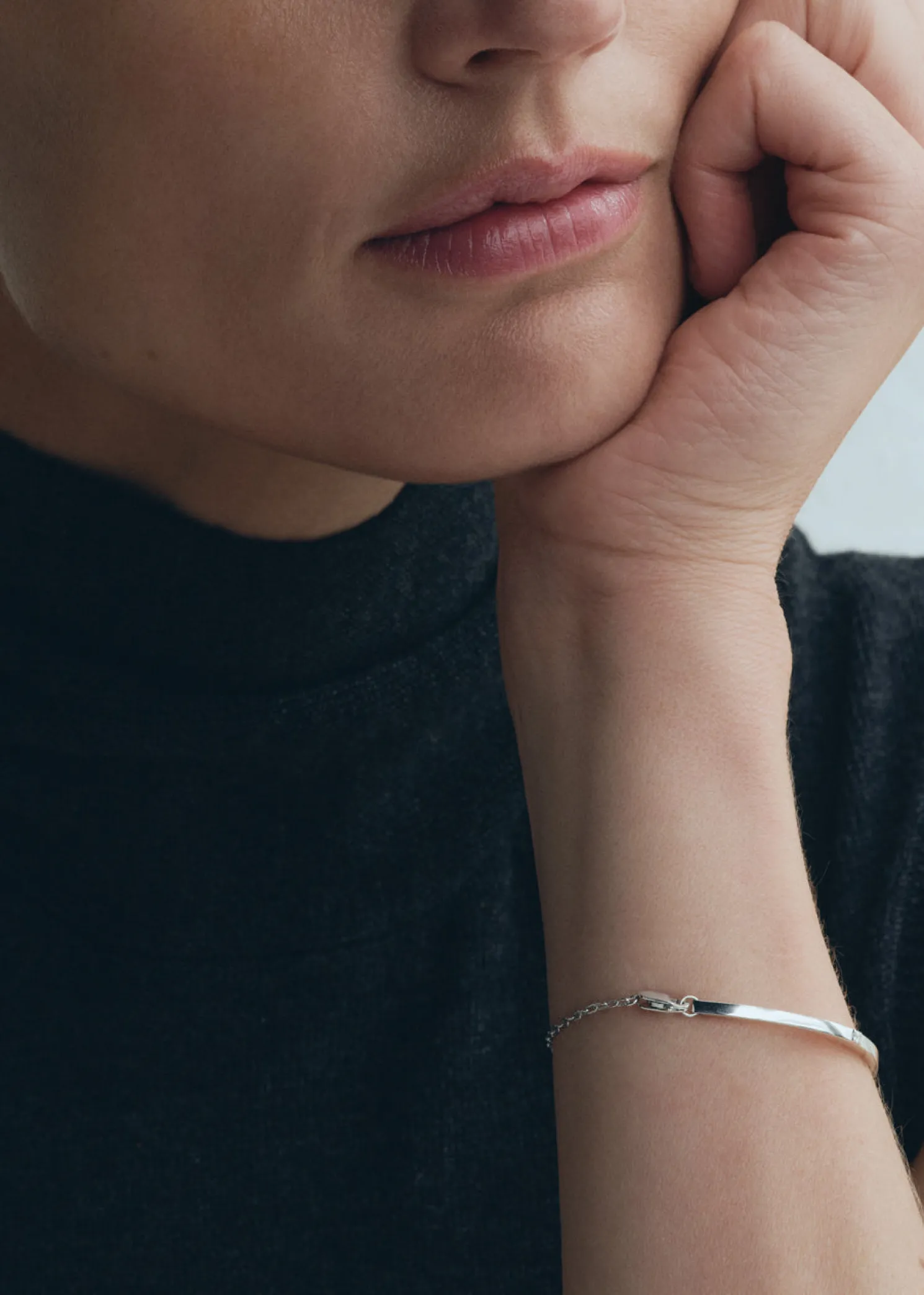 TOTEME bracelet featuring an off-center bezel setting that captures our penchant for refined minimalism. It is crafted in Arezzo, Italy by expert jewelry makers with a partial chain construction made from palladium-reinforced, recycled 18kt white gold set with a diamond weighing 0.024 carats.