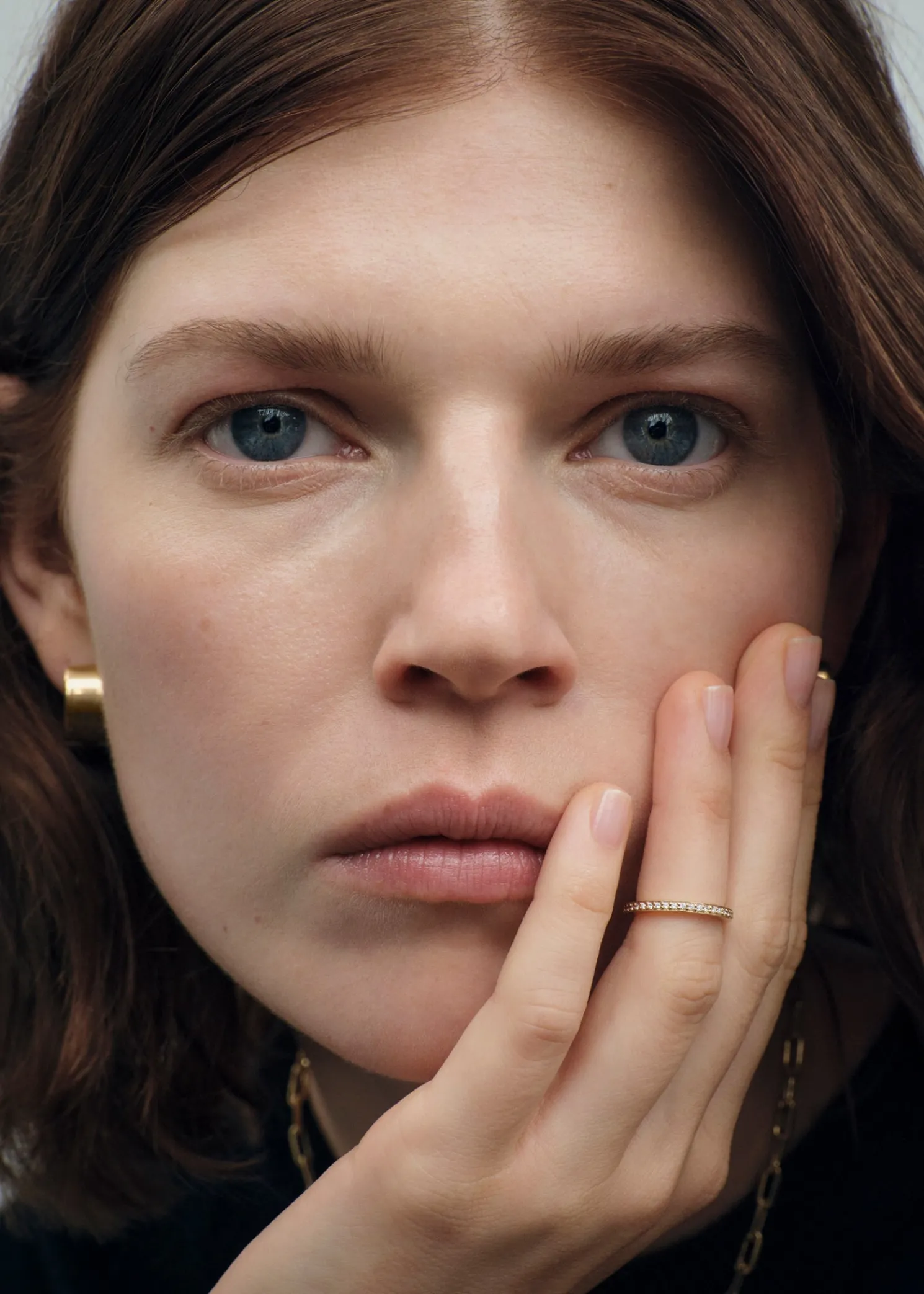 The TOTEME eternity ring is shaped to modern midi proportions devised to rest above the knuckle solo or stacked with other rings. It’s crafted in Arezzo, Italy from recycled 18kt gold grain-set with brilliant-cut diamonds that are supported by prongs for an intricate result.