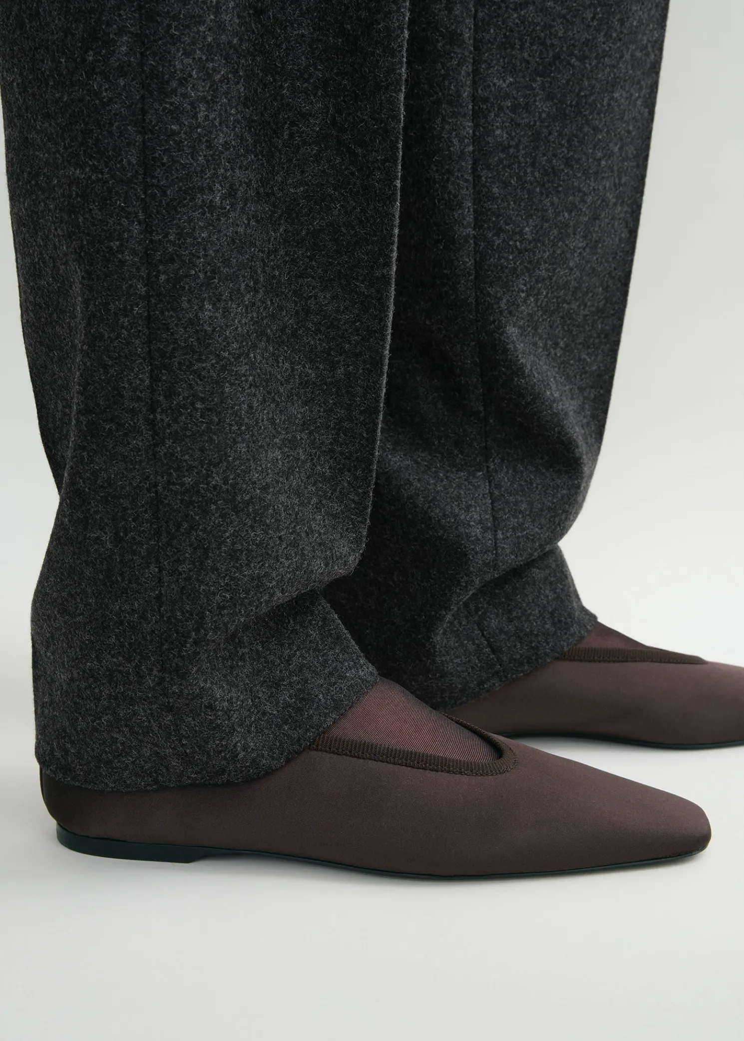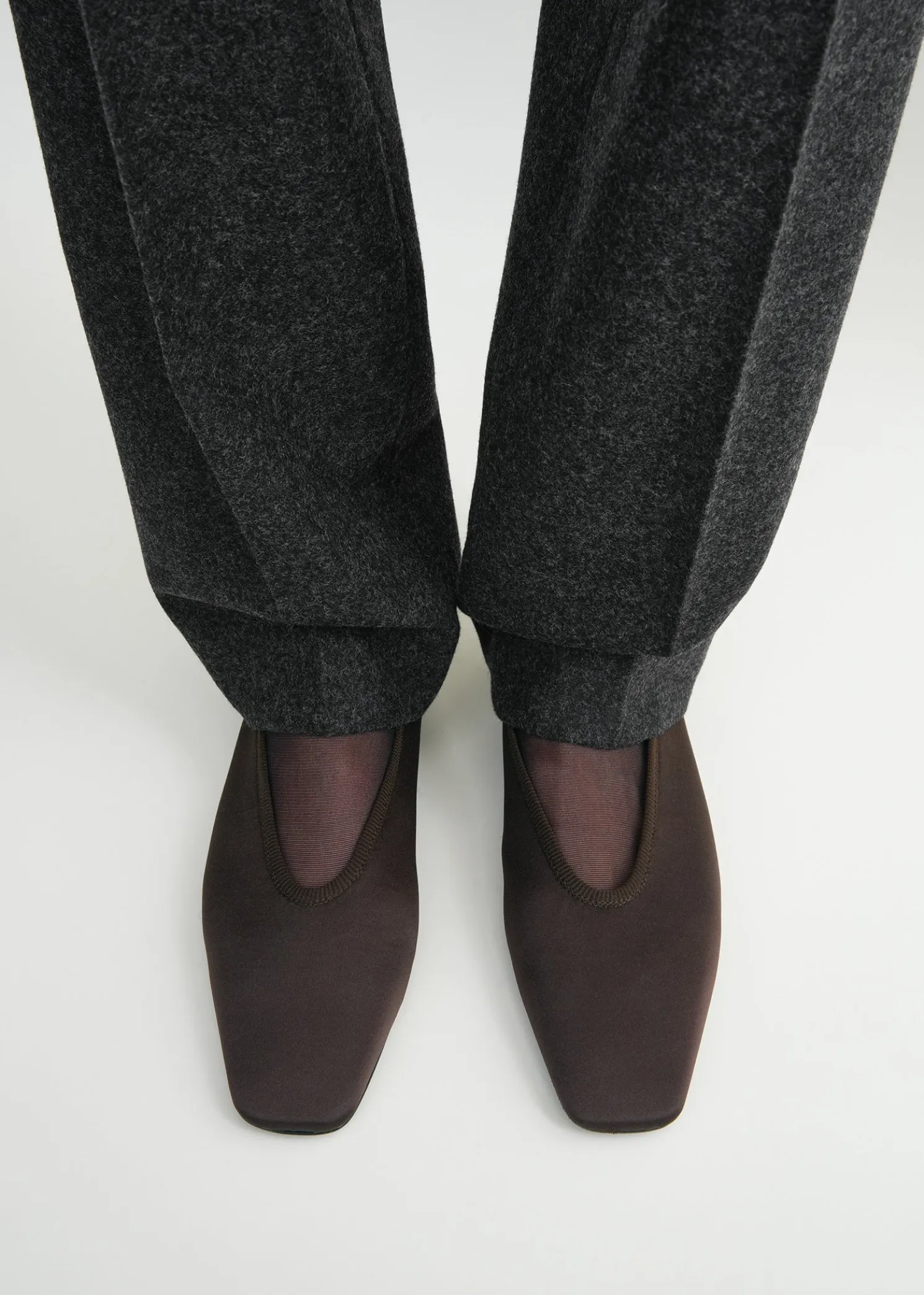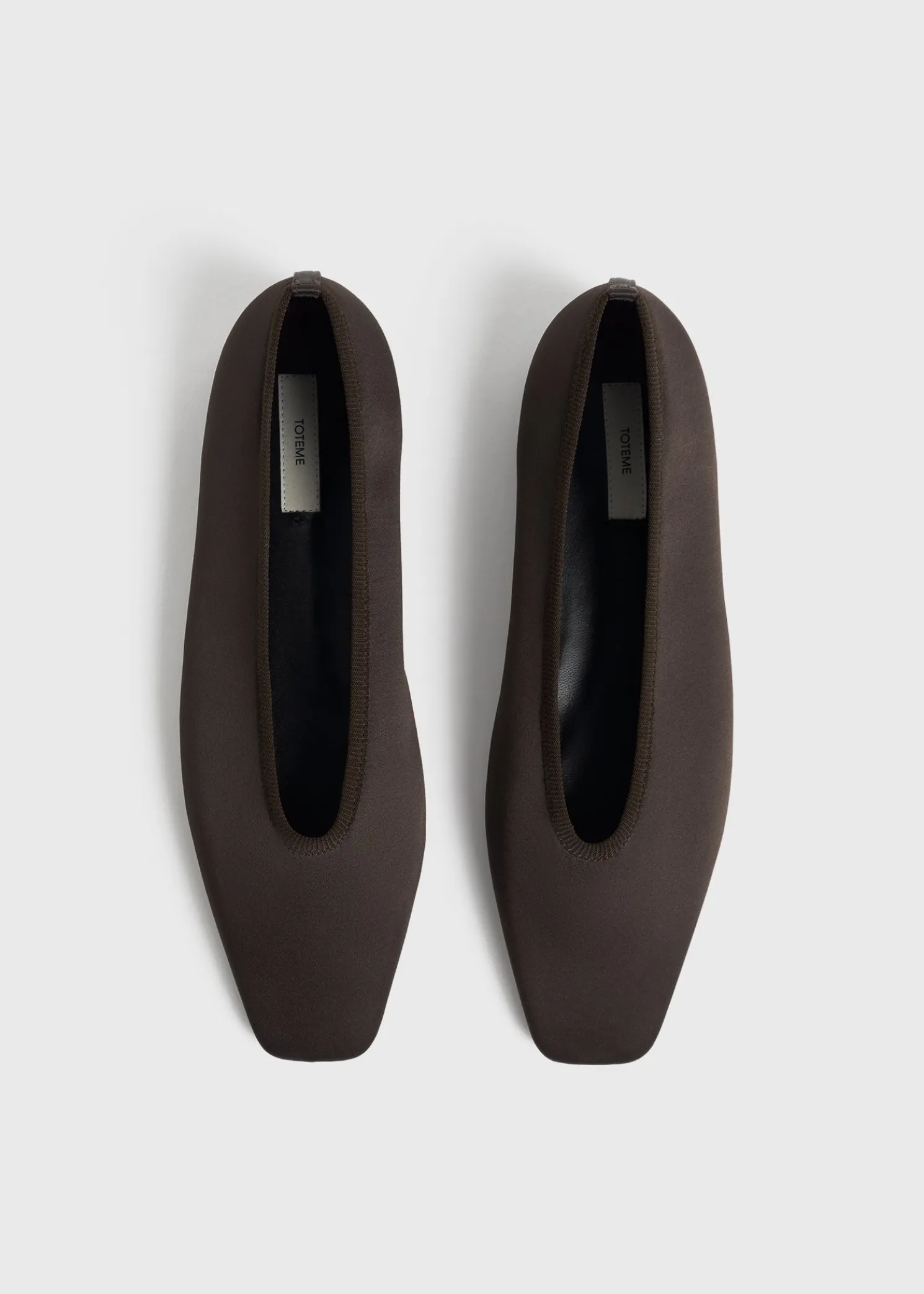 TOTEME ballerinas infused with an effortless, minimalist mood. They are crafted in Spain from satin and are fully lined in soft leather which molds around the foot as you wear them. Wear them throughout the week.