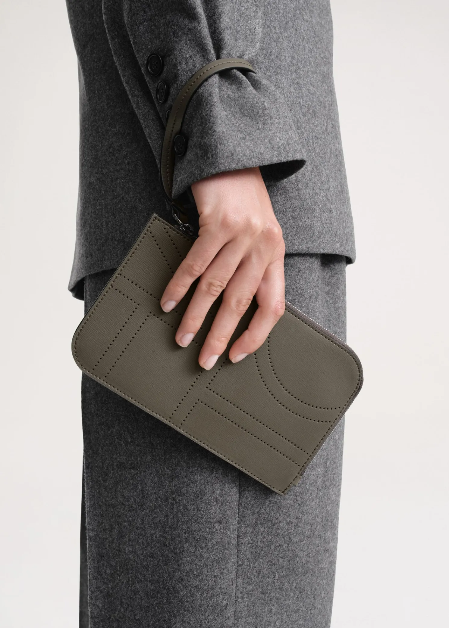 Monogram leather wristlet pouch ash