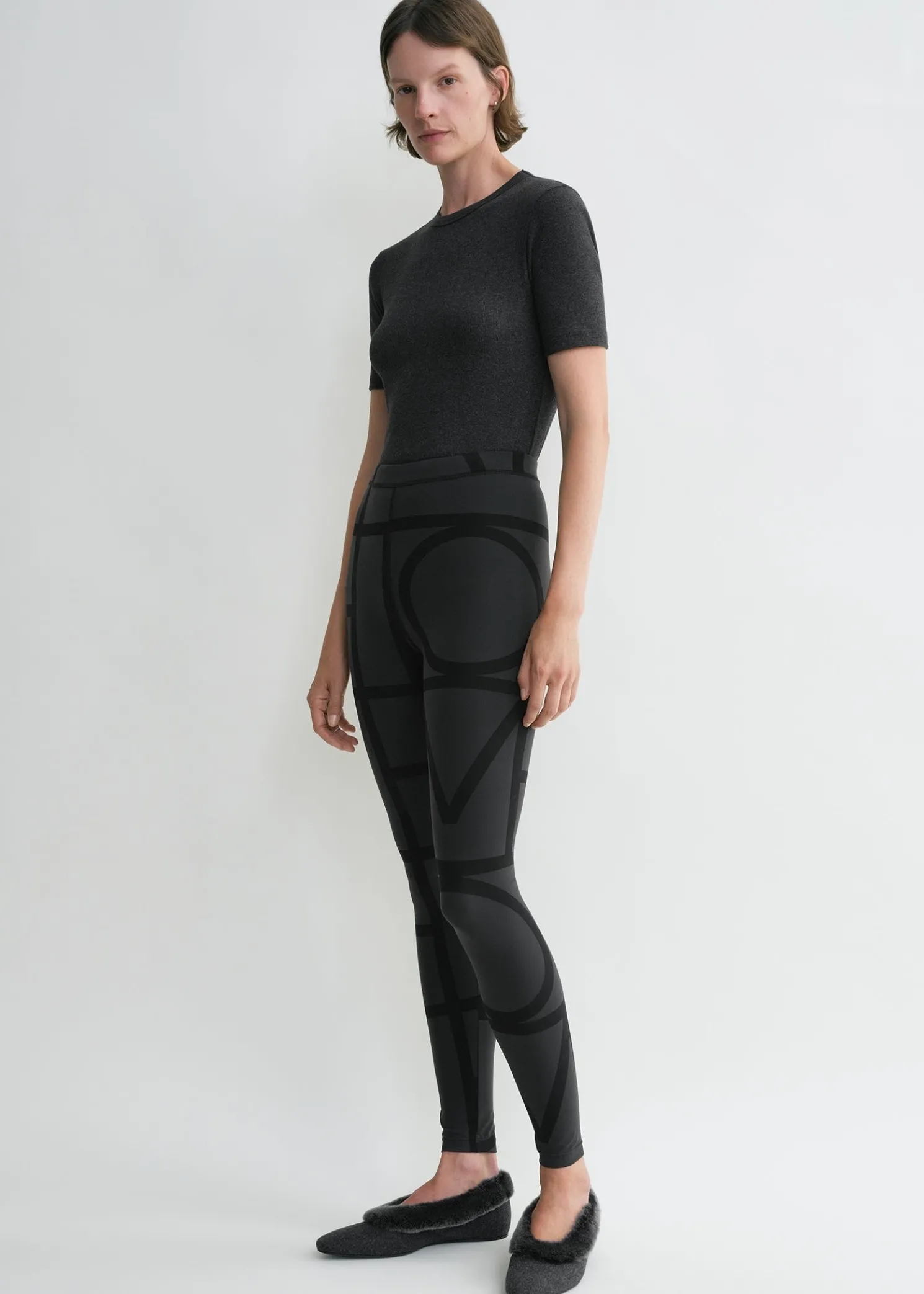 nnTOTEME leggings made in Portugal from stretch recycled-polyamide jersey printed with a scaled-up monogram for graphic appeal. Style them with a knit and flats to run errands.