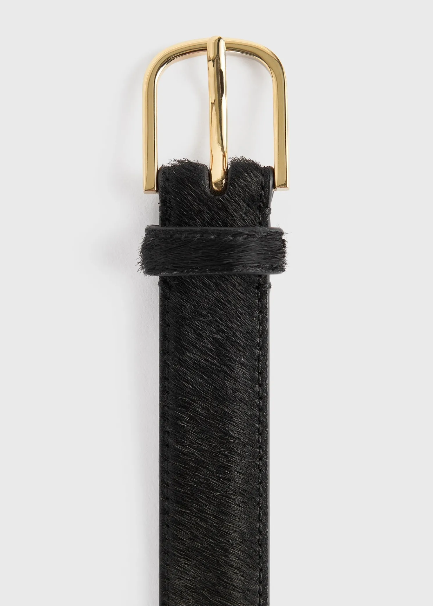 TOTEME belt crafted in Italy from calf leather treated to resemble pony hair and complete with a leather reverse and a gold-tone metal buckle for a classic finish.