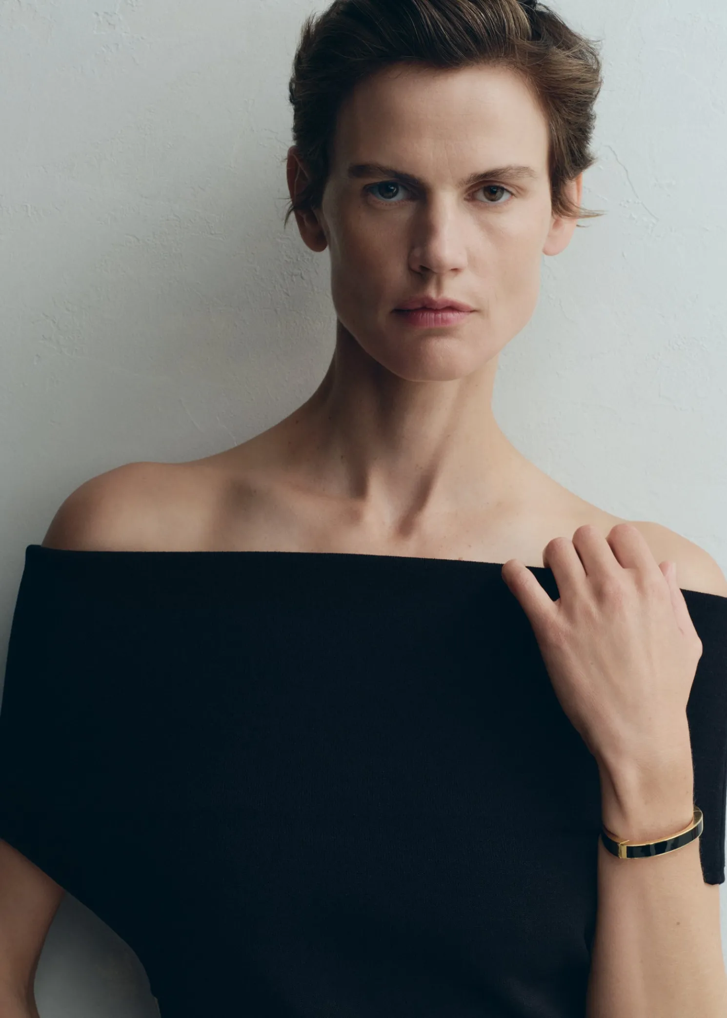TOTEME Signature bracelet curated with a minimalist point of view to sharp proportions. It’s made by Italian goldsmiths from enamel-coated, hard-wearing 18kt gold-plated brass to a hinged construction that fastens with an effortless push button.