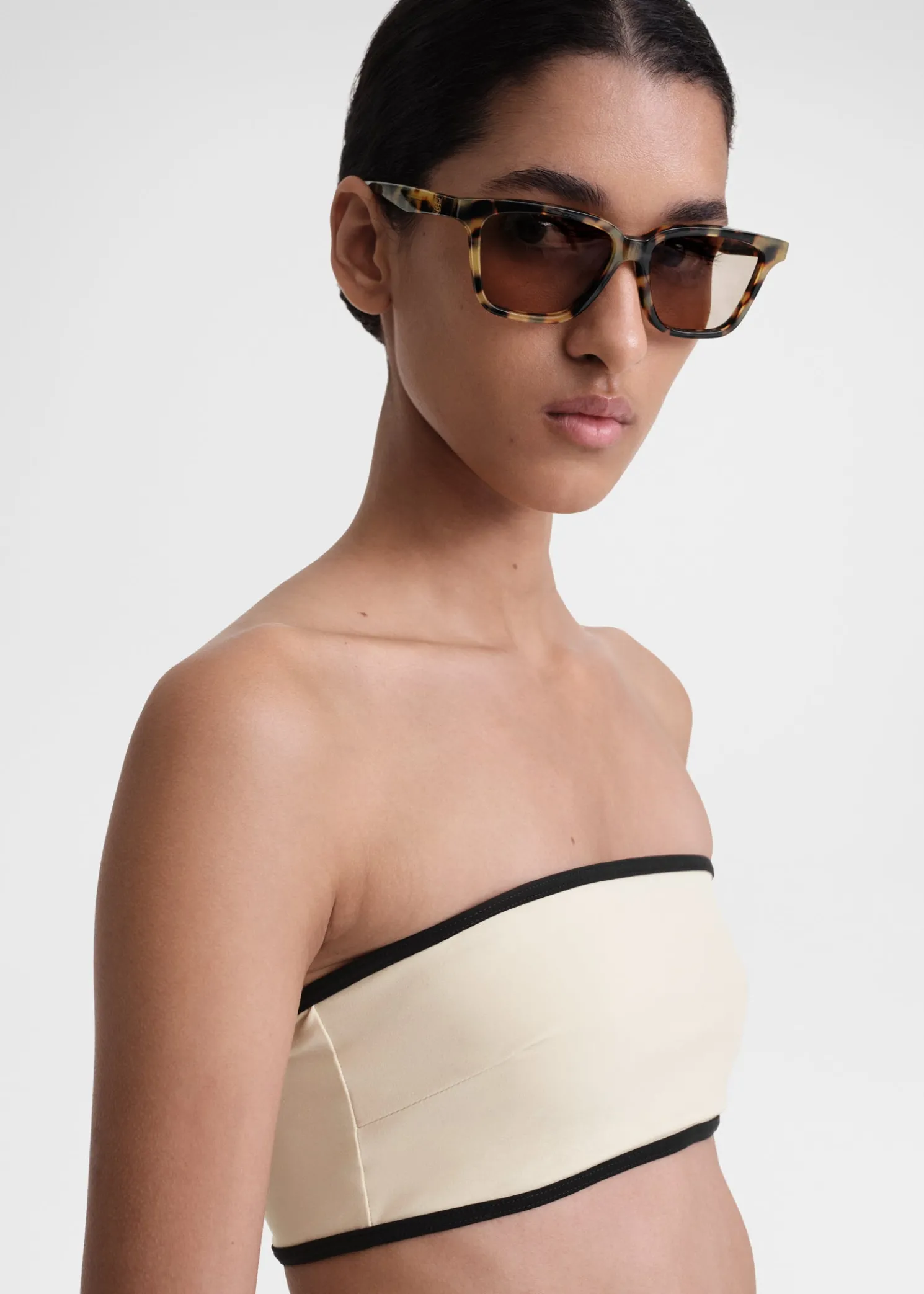 Stripe edge strapless bikini top light hay