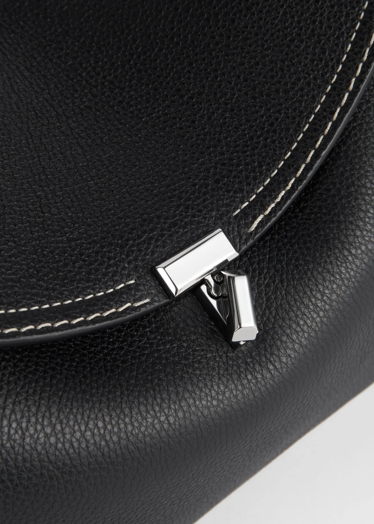 nEveryday TOTEME bag sculpted with a curved topline that complements the shape of the hand and arm. It is crafted in Italy from supple yet resilient pebble-grained leather finished with a silver-tone metal T-Lock, contrast topstitching and protective feet, then lined in beige microsuede fitted with two leather slip pockets. Carry it from the top handle or from the detachable and adjustable shoulder strap for different styling options.