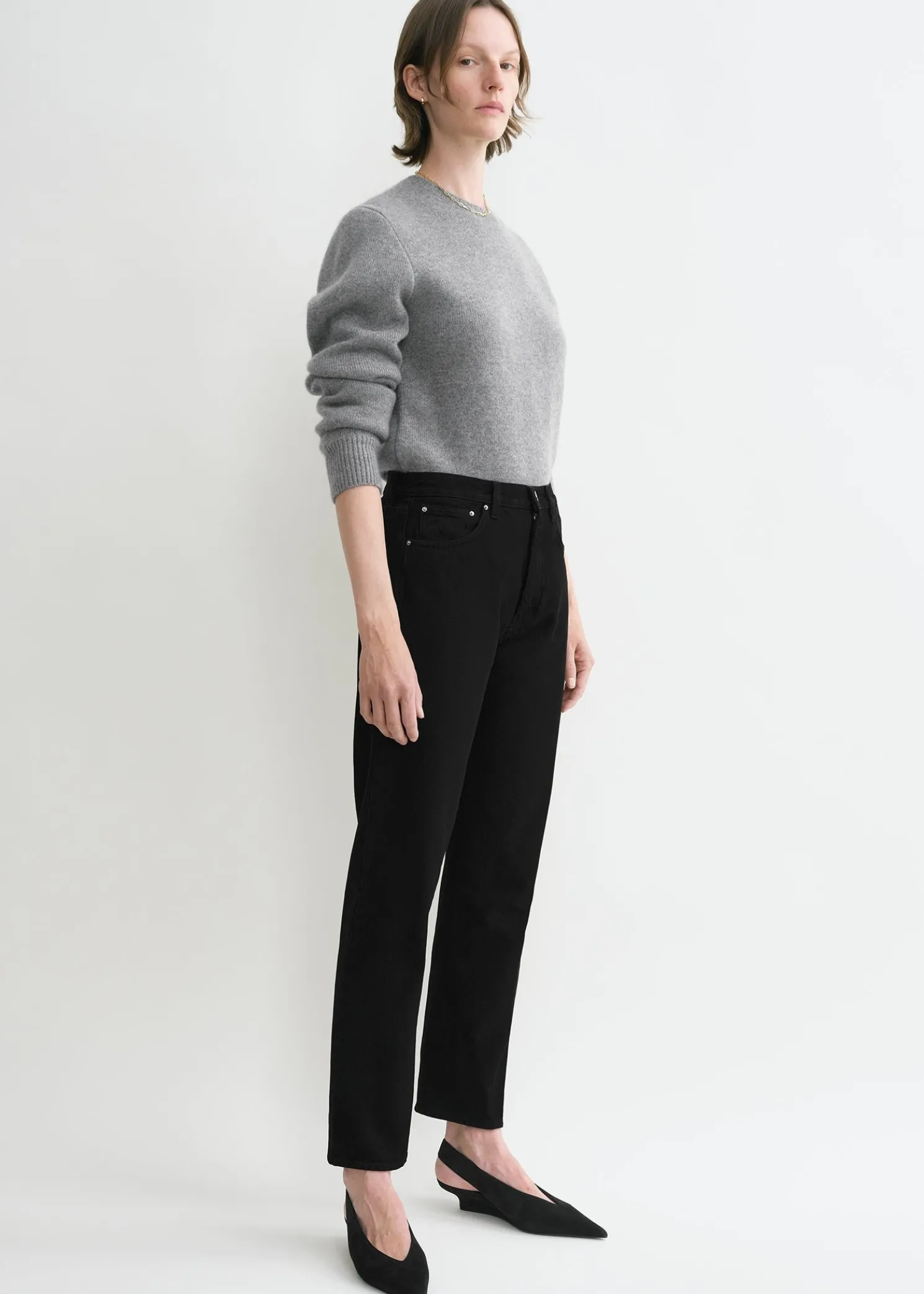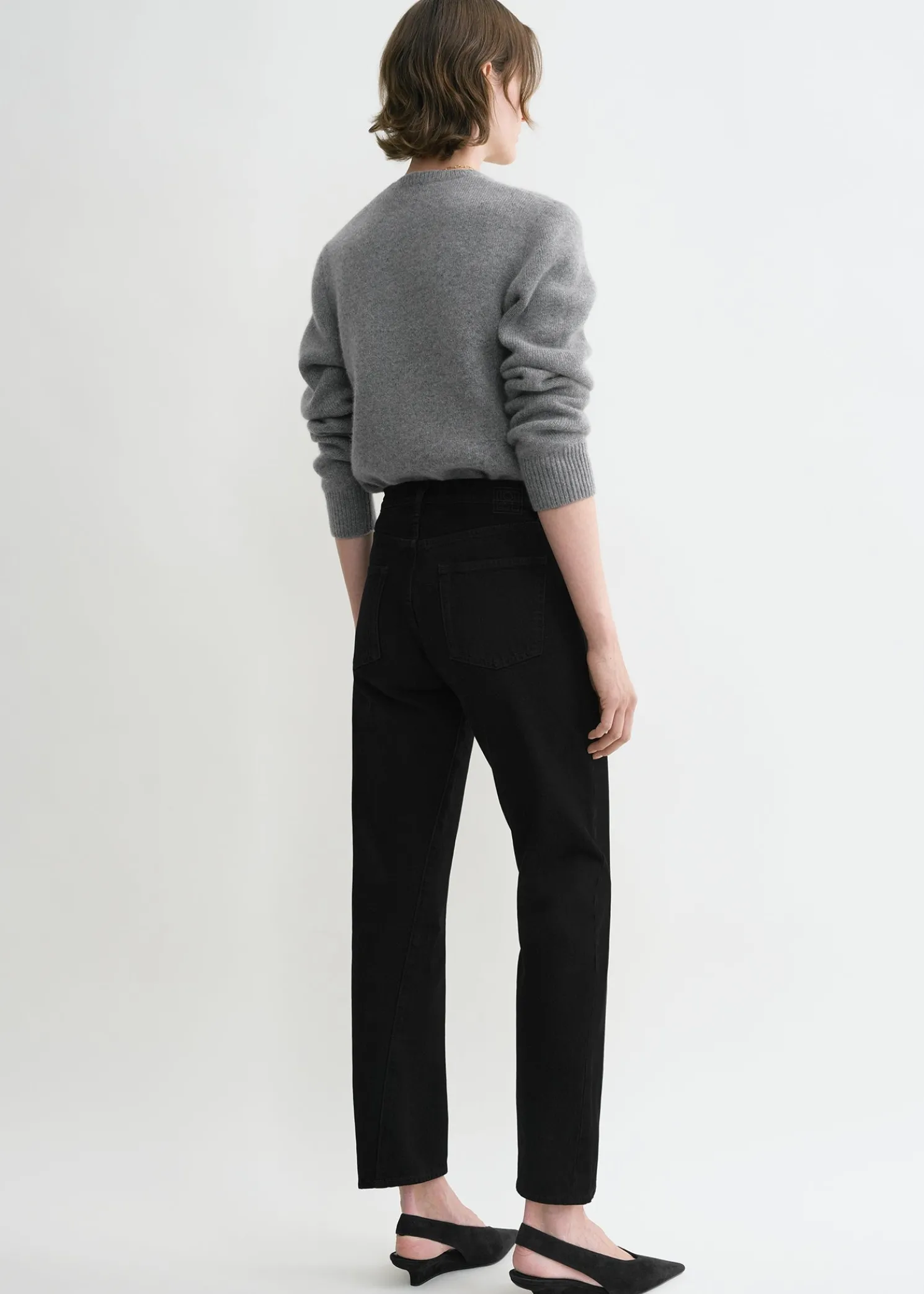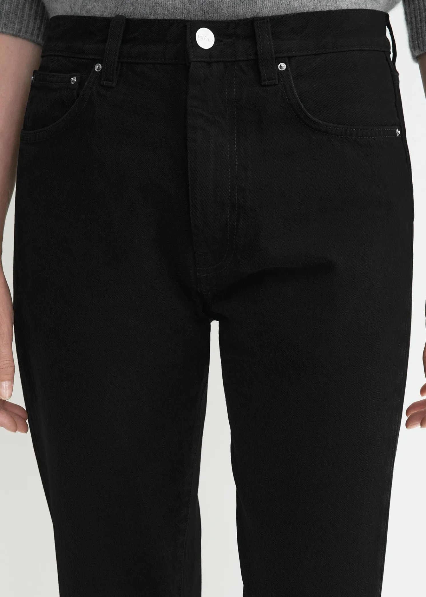 TOTEME jeans named after the signature twisted side seams running along the straight legs, which are slightly tapered toward the cropped cuffs. They’re made in Italy from mid-weight and rigid organic-cotton denim with a low-to-mid waistline, classic five pockets and a zipper fly. Note how they will mold naturally to your body after a few wears.