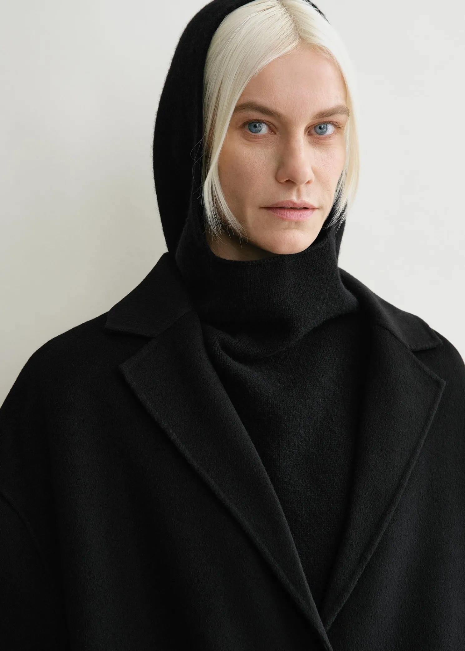 Hooded TOTEME bib to stay warm in style. It is knitted from a mid-weight blend of wool and cashmere that feels soft and cozy against the body. Wear it in cold weather with tonal accessories.
