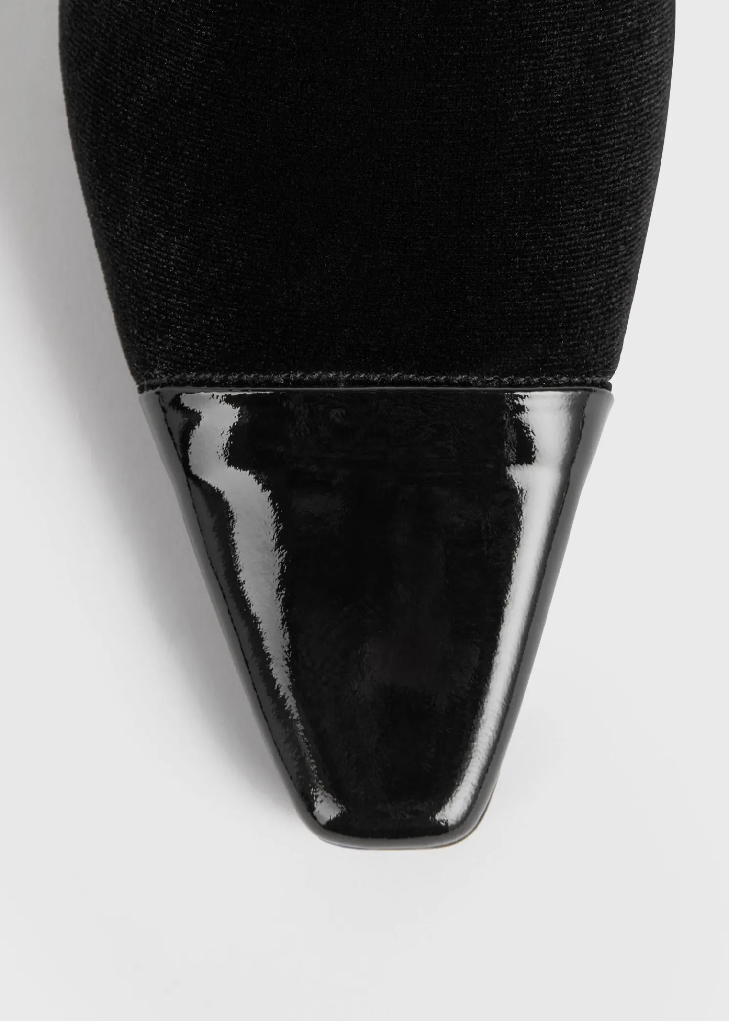 TOTEME bootie pumps featuring a tactile bi-material design. Made in Spain, they have an elasticated velvet upper and a shiny patent leather toecap and are set on a 60mm heel. Team them with occasion looks.