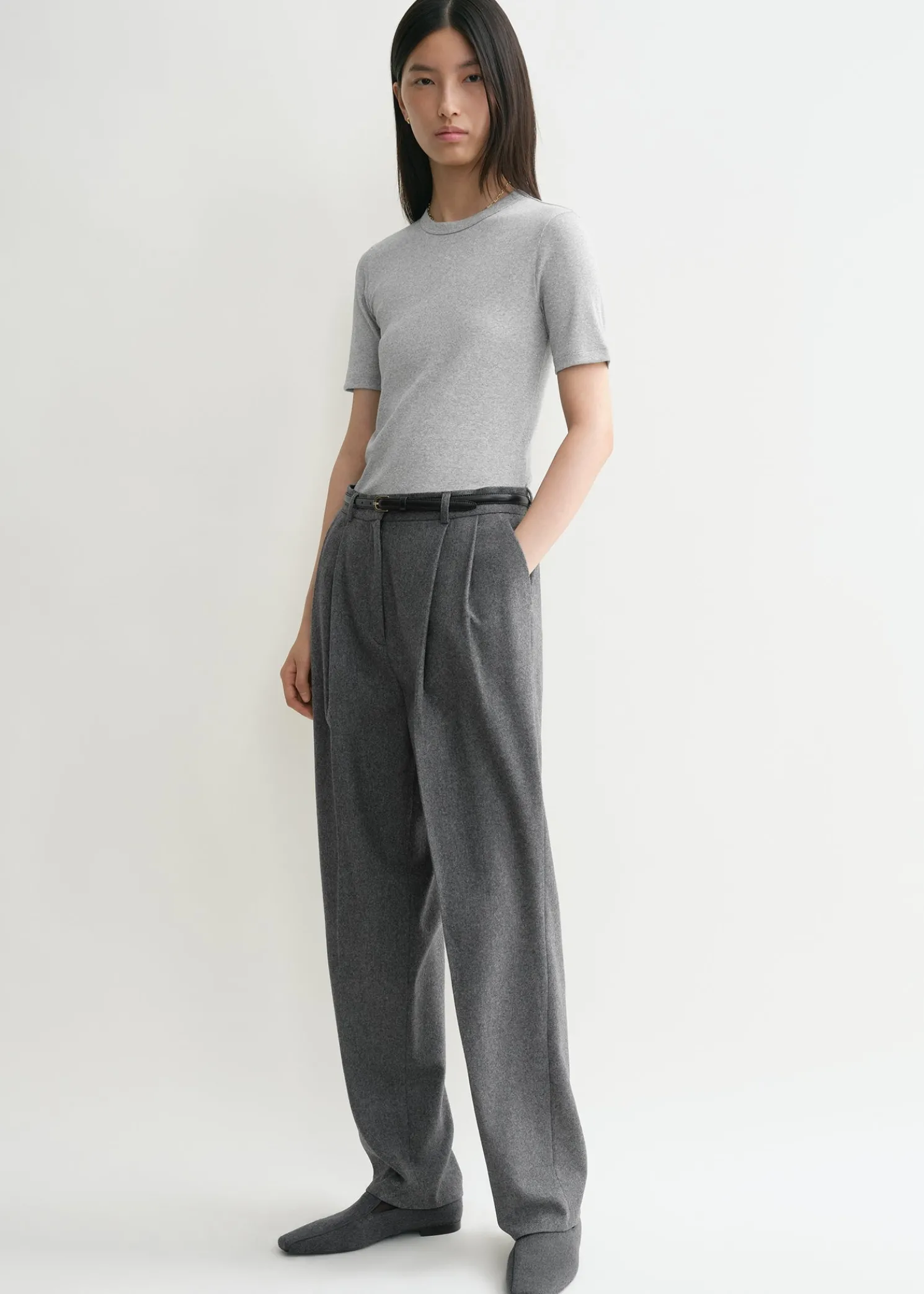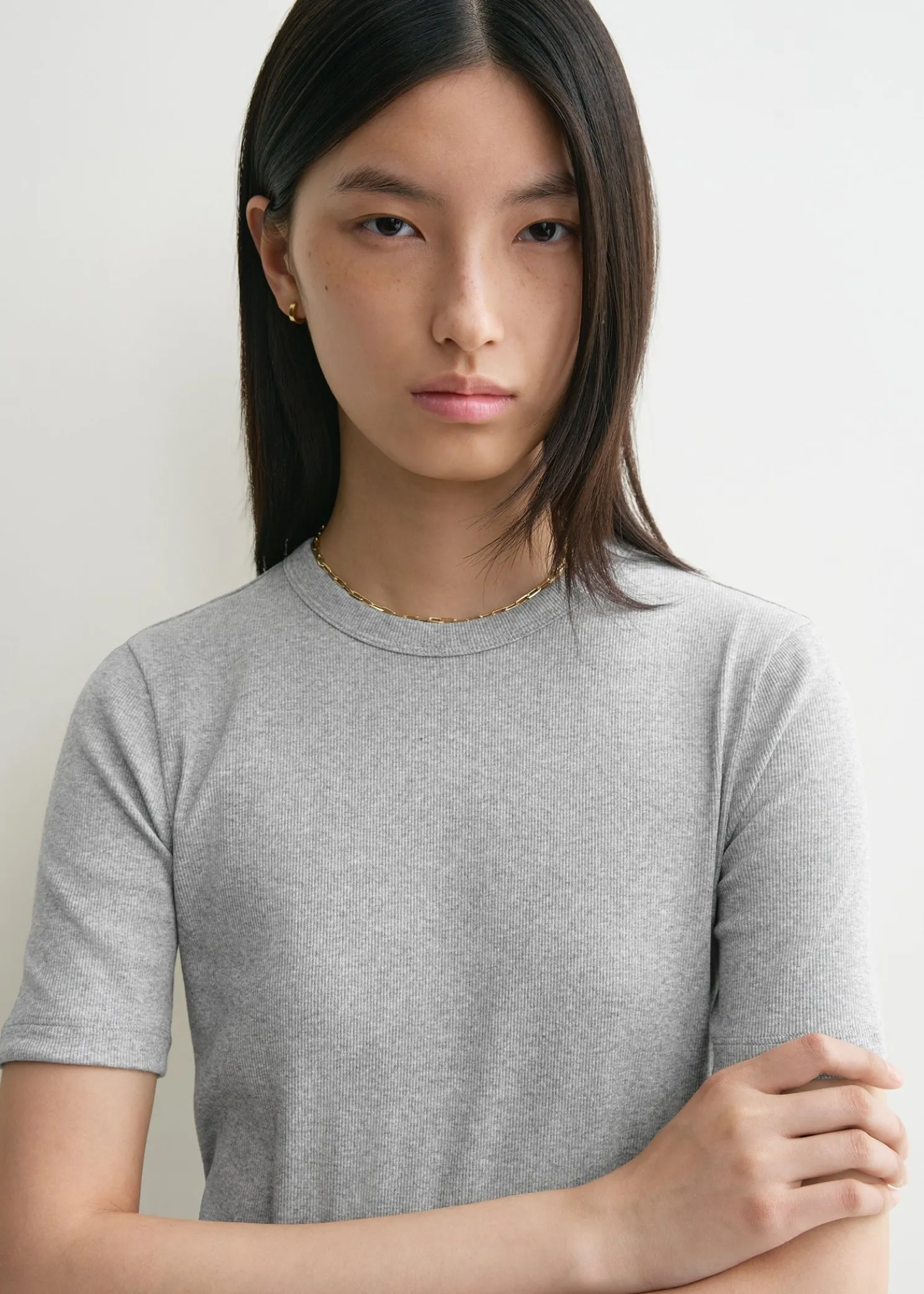 TOTEME top outlined with a round neckline, short sleeves and a hip-hugging hem. It’s made from ribbed organic cotton jersey with a hint of elastane for a comfortable fit. Wear it as a base layer for winter looks.n
