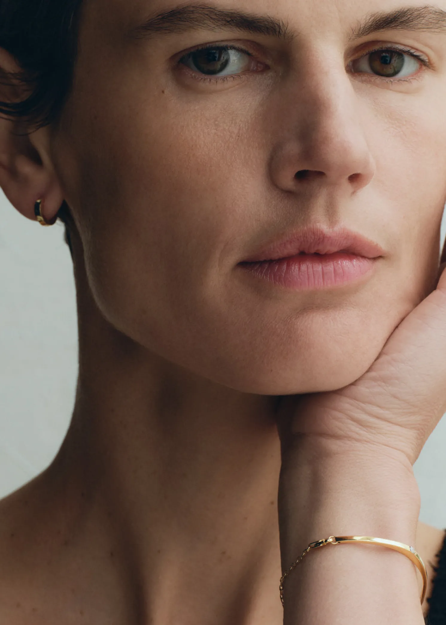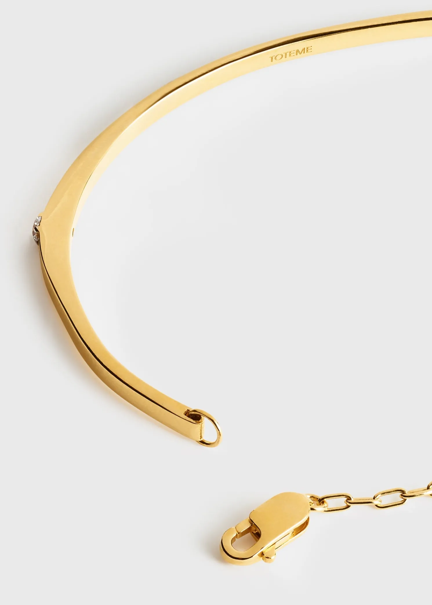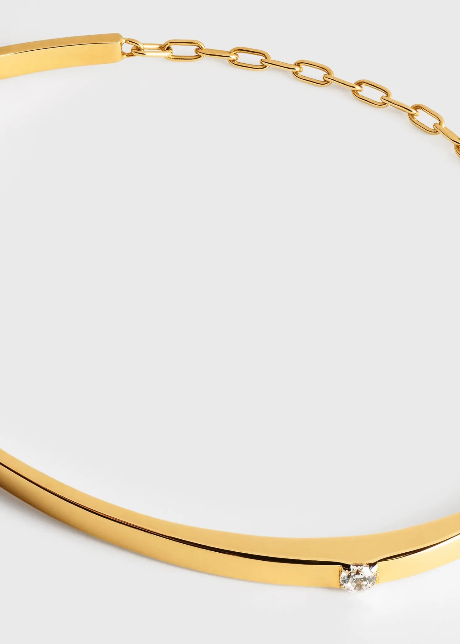 TOTEME bracelet featuring an off-center diamond bezel setting that captures our penchant for elegant minimalism. It is crafted in Arezzo, Italy by expert jewelry makers from recycled 18kt yellow gold set with a stone weighing 0.024 carats and a partial chain construction.