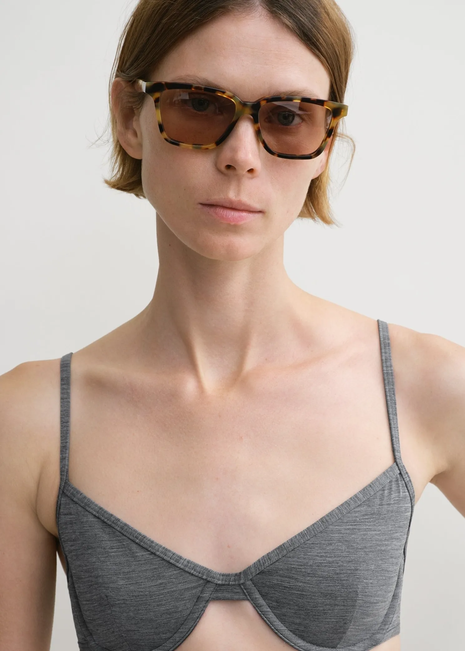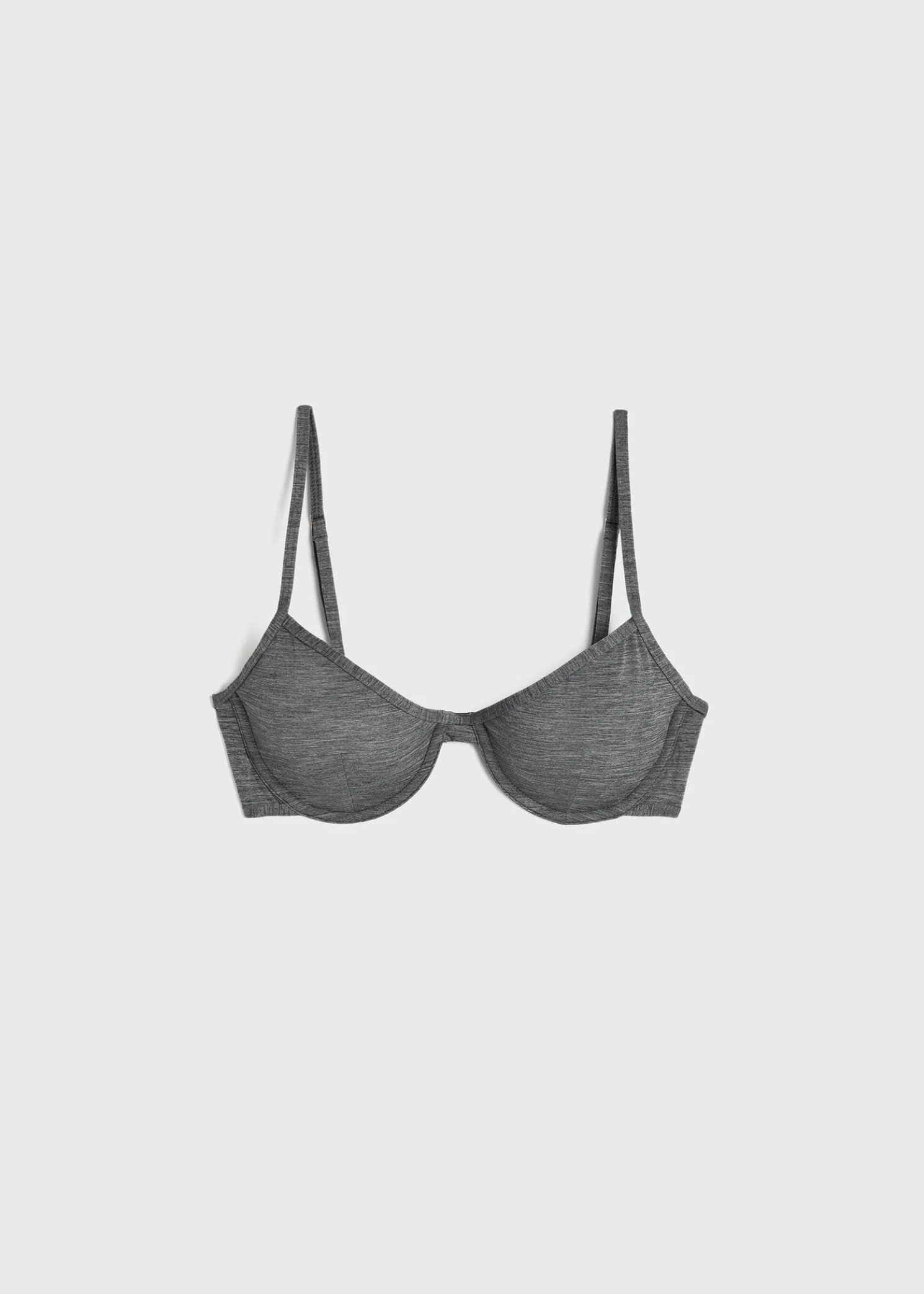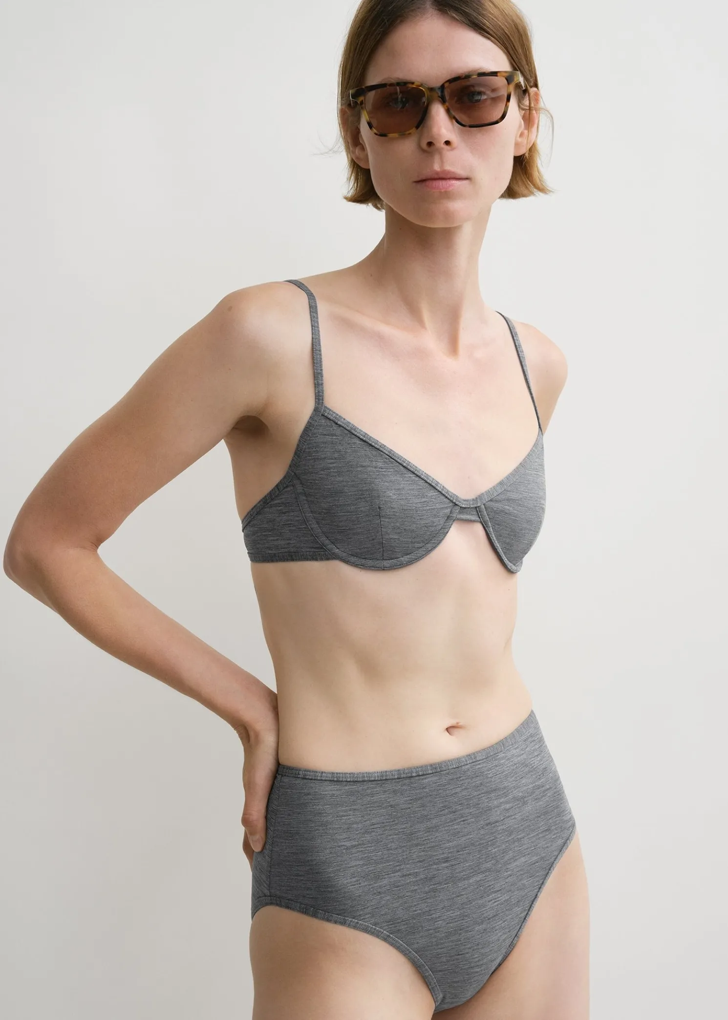 nTOTEME bikini top with an alluring half-cup silhouette that is underwired for support. It is suspended from adjustable straps with silver-tone metal sliders and fastens with a matching clasp, then is fully lined in tonal jersey. Wear it as a set to showcase the mélange effect.