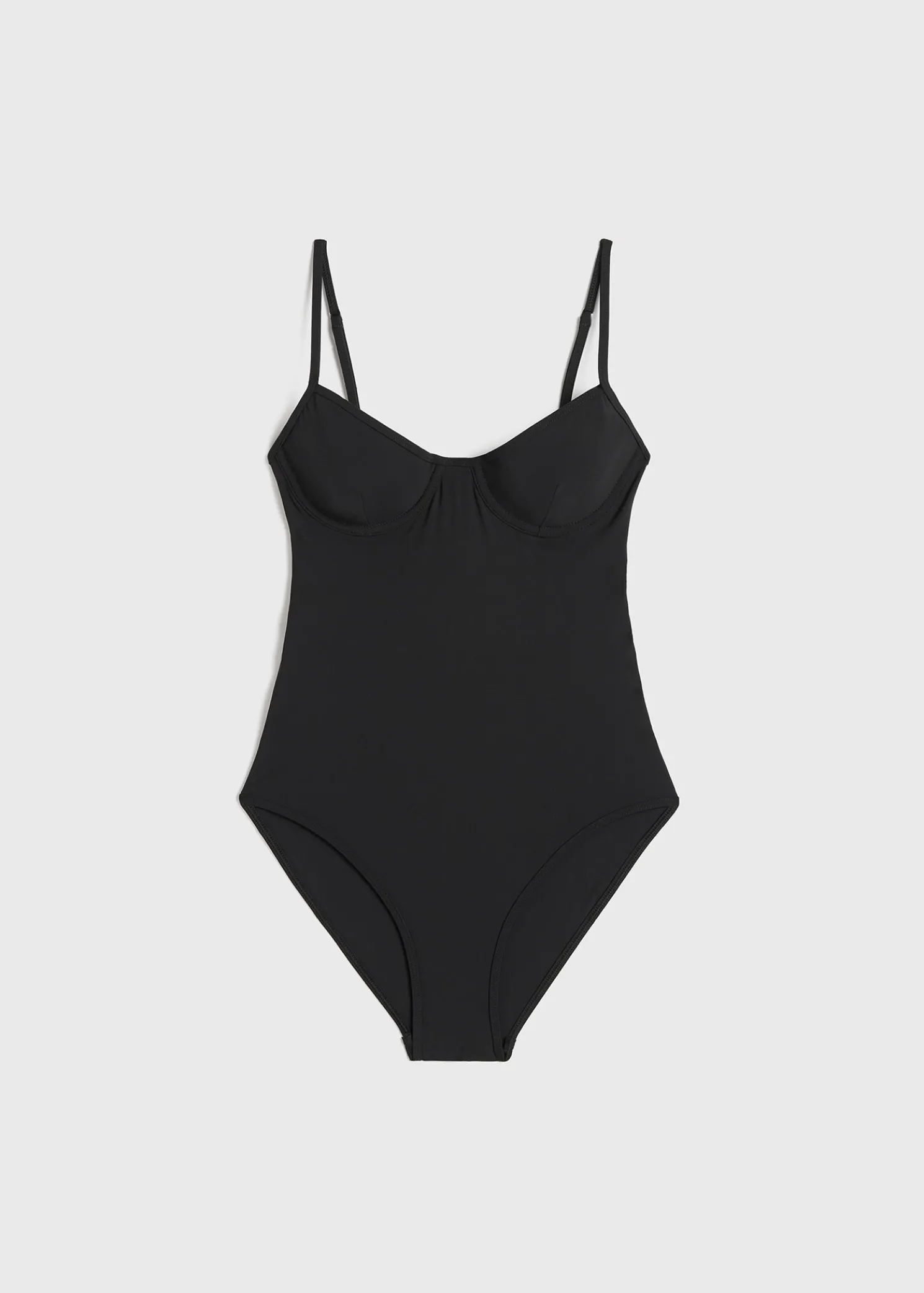 nTOTEME swimsuit with alluring half cups that are underwired for support. It has adjustable straps with silver-tone metal sliders and is fully lined in the same material. Complete an elegant beachside look with a sarong.