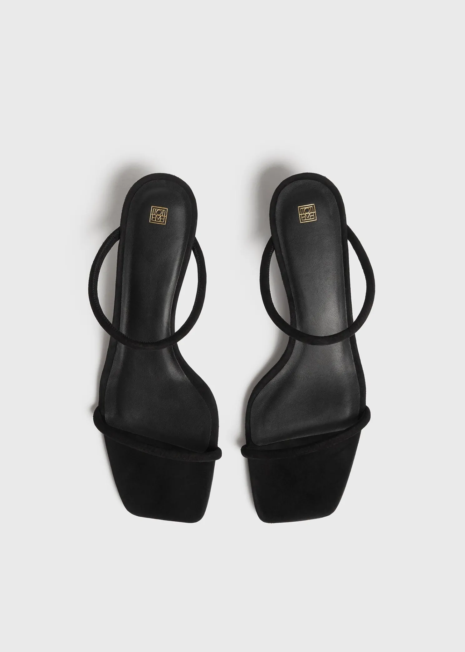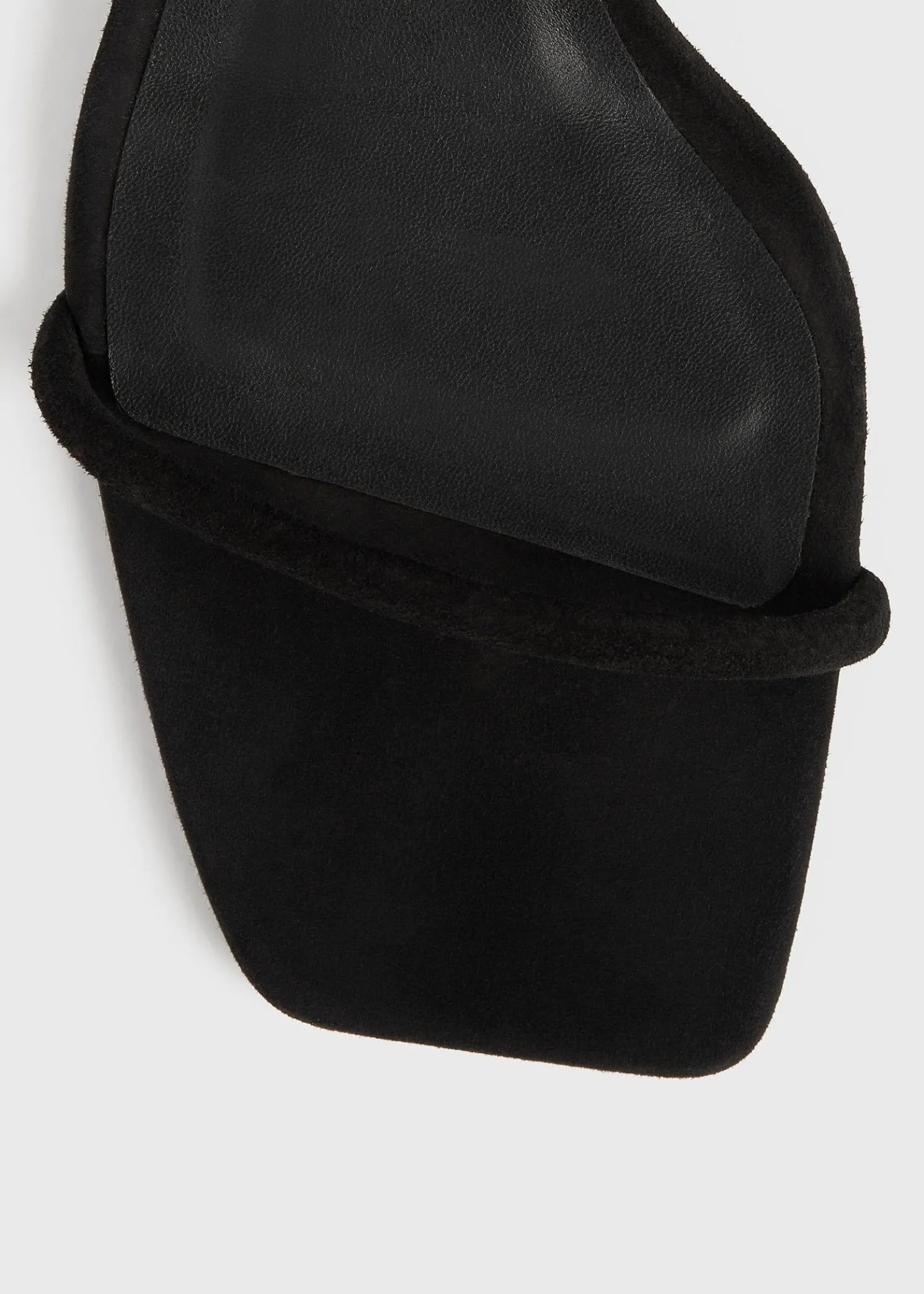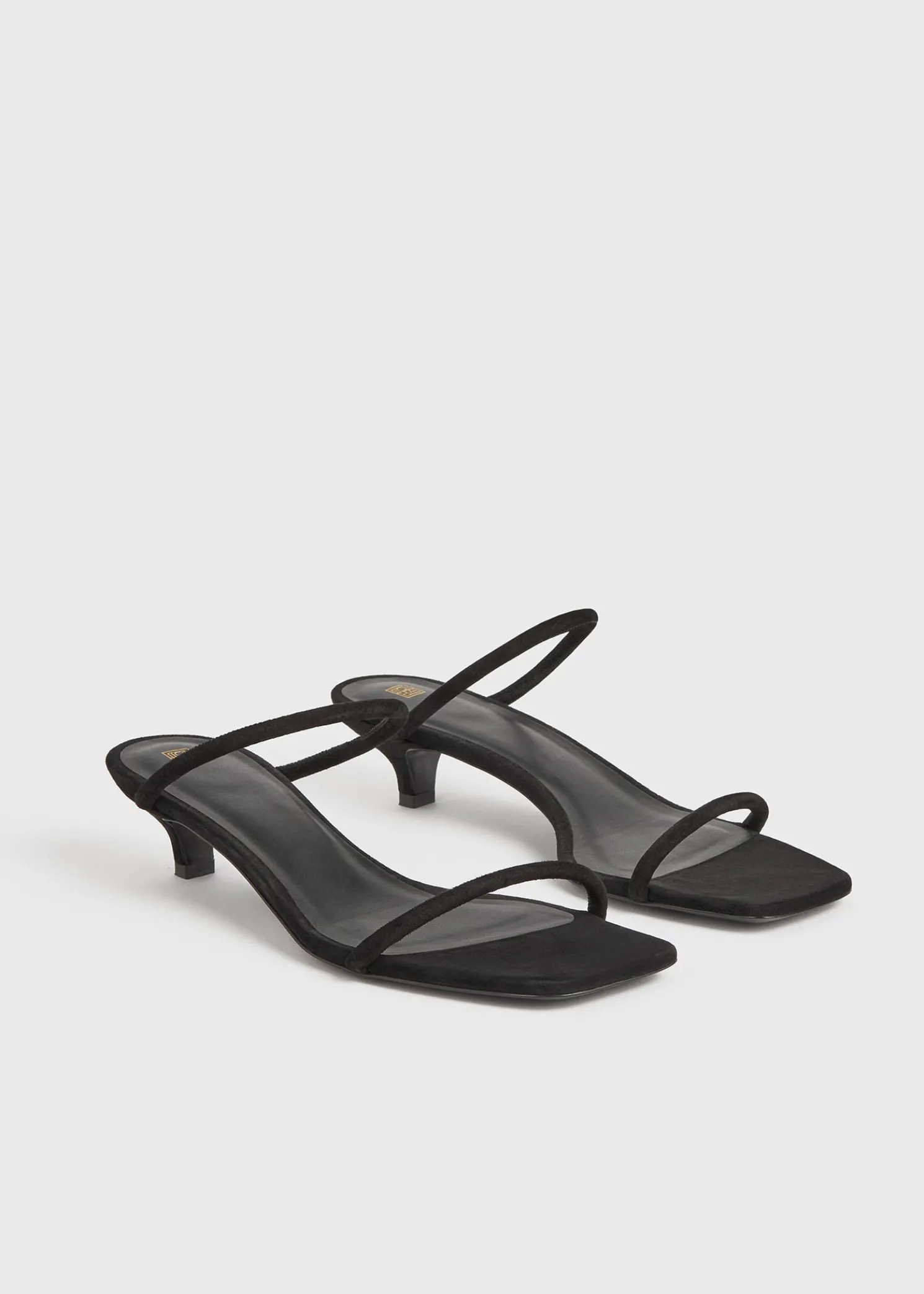 TOTEME mule sandals set with two rolled straps for a minimalist look. They are Italian-made from suede with a cushioned leather insole and a small stacked heel measuring 35mm. Team them with cropped trousers and midi skirts.