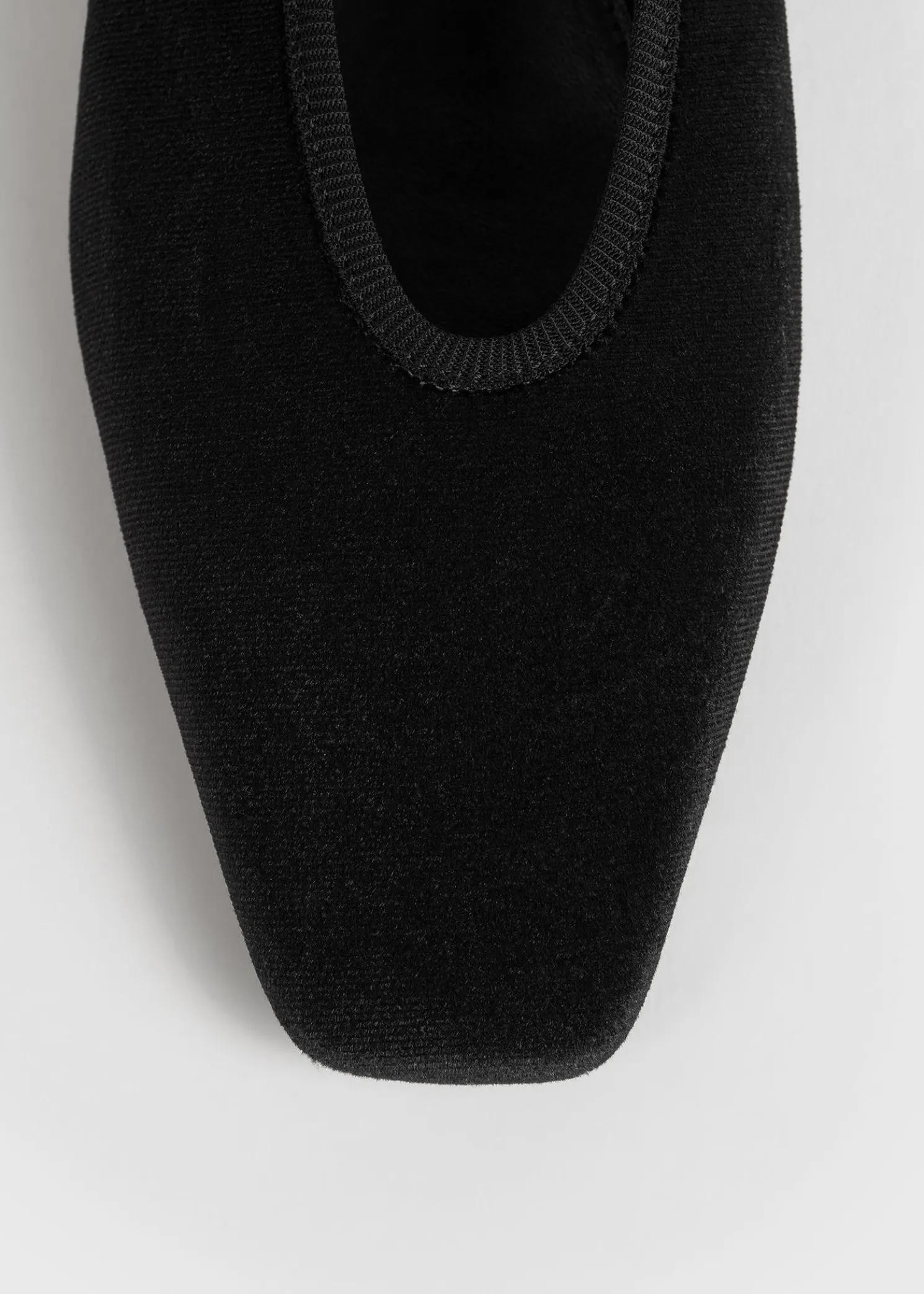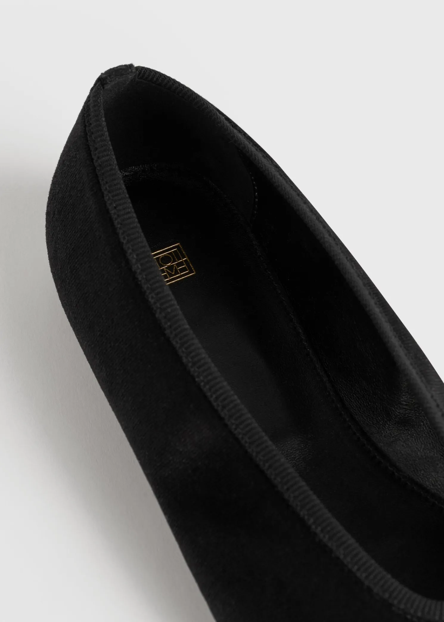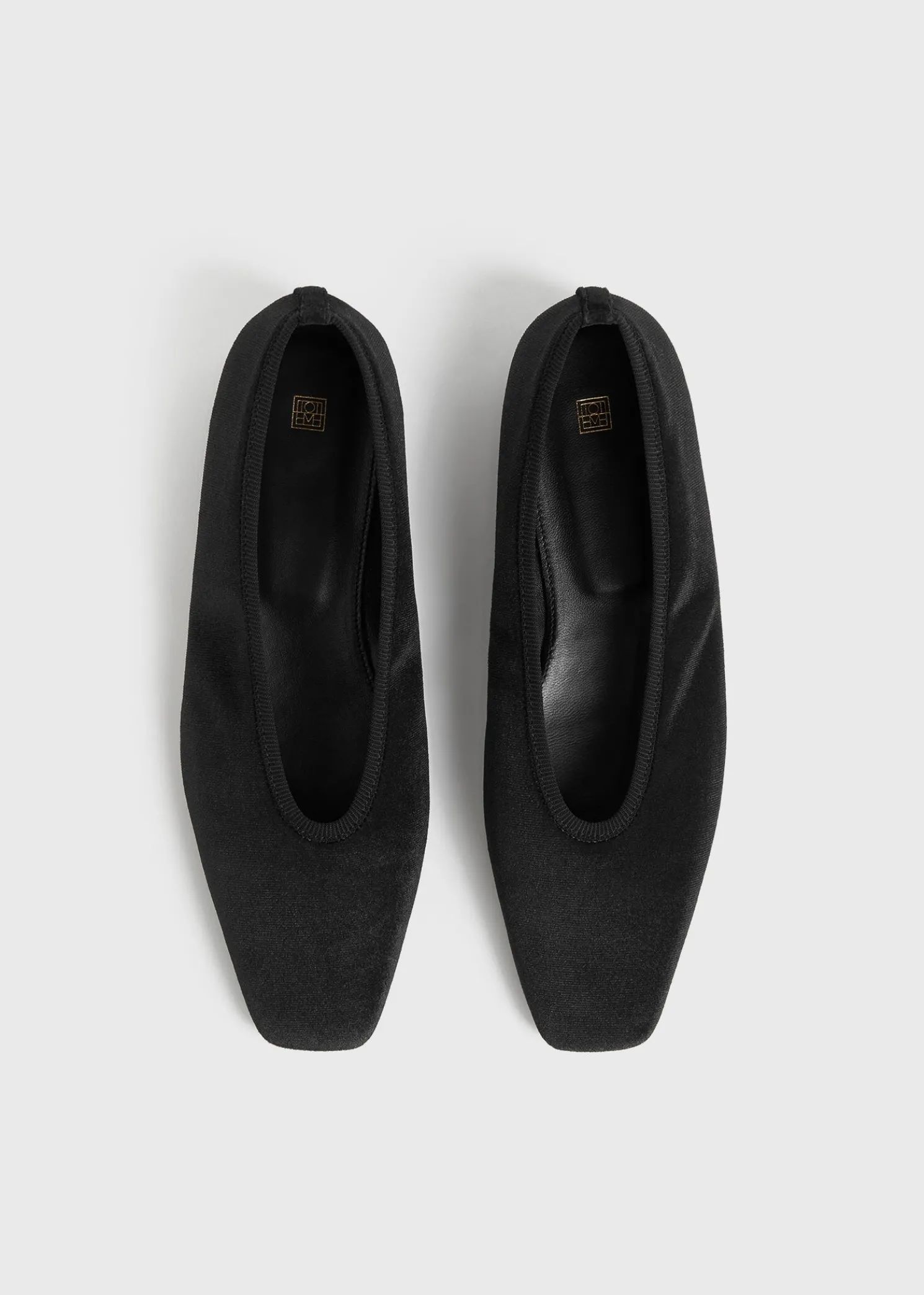 TOTEME ballerinas infused with an effortless, minimalist mood. They are crafted in Spain from velvet and are fully lined in soft leather that molds around the foot as you wear them. Let them peep below tailored trousers.