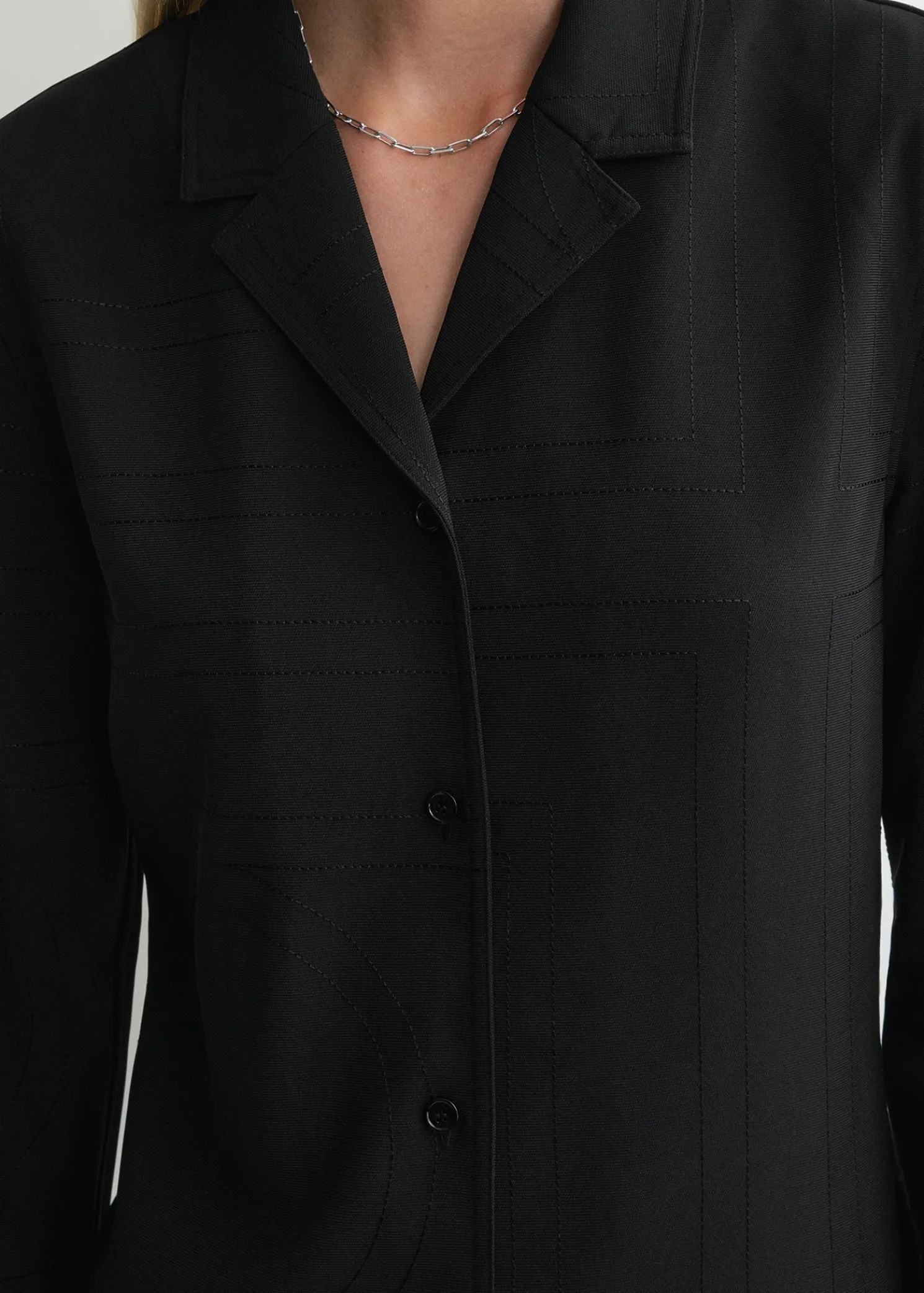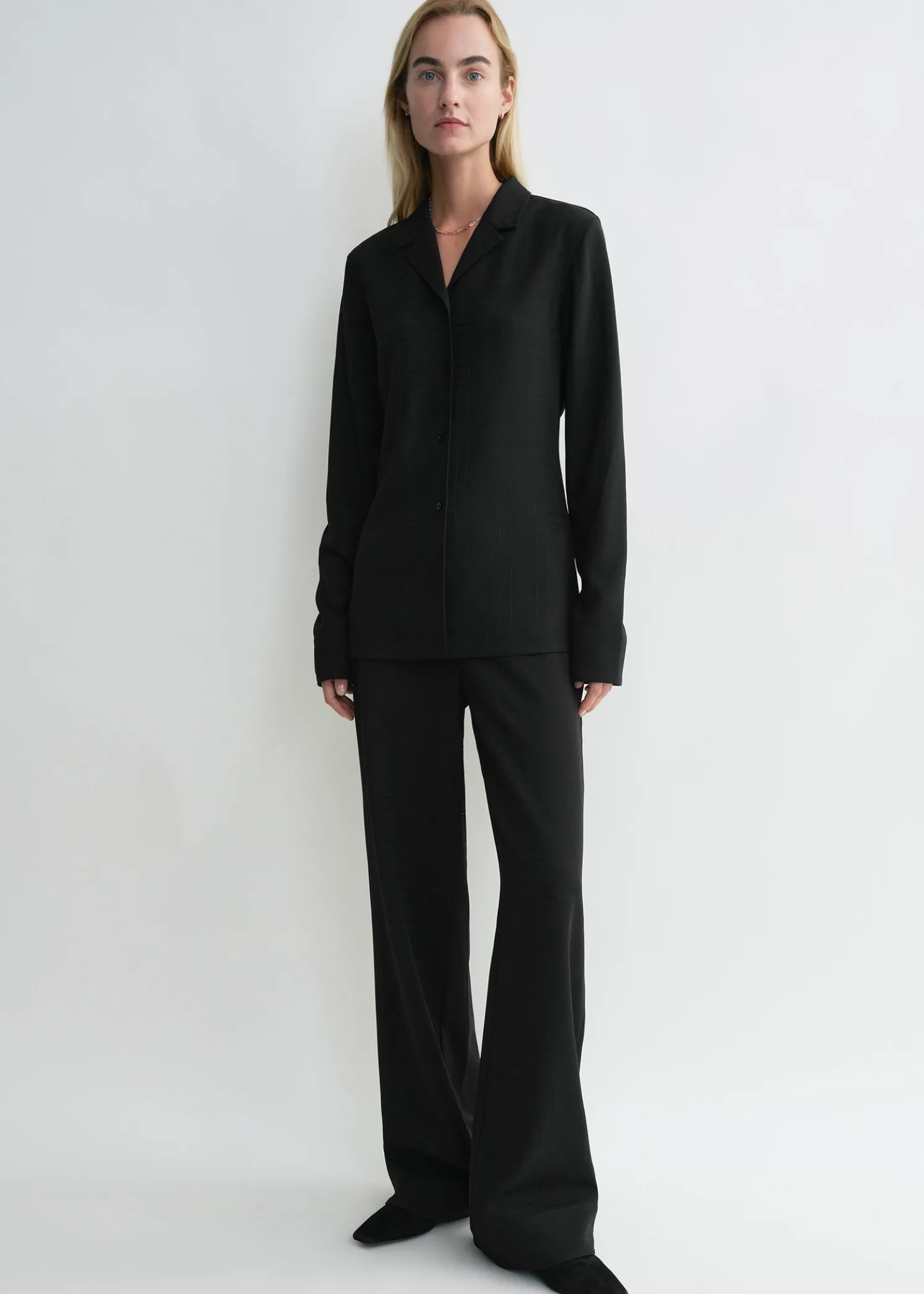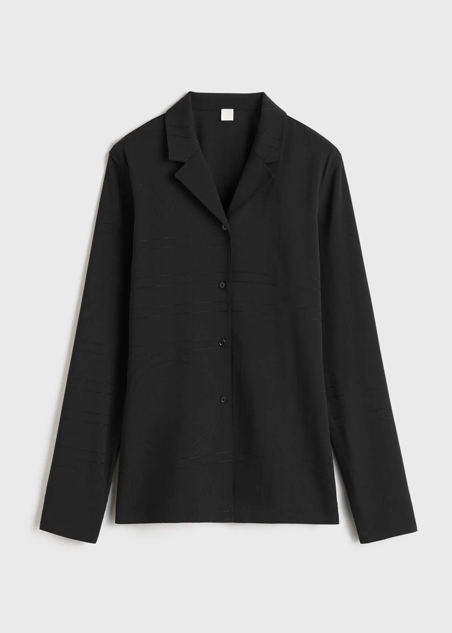 This TOTEME cady shirt is part of an elegant set envisioned to entertain at home or for easy occasion dressing. Inspired by classic pajamas, it is topstitched with a discreet monogram pattern and fastens with tonal buttons.