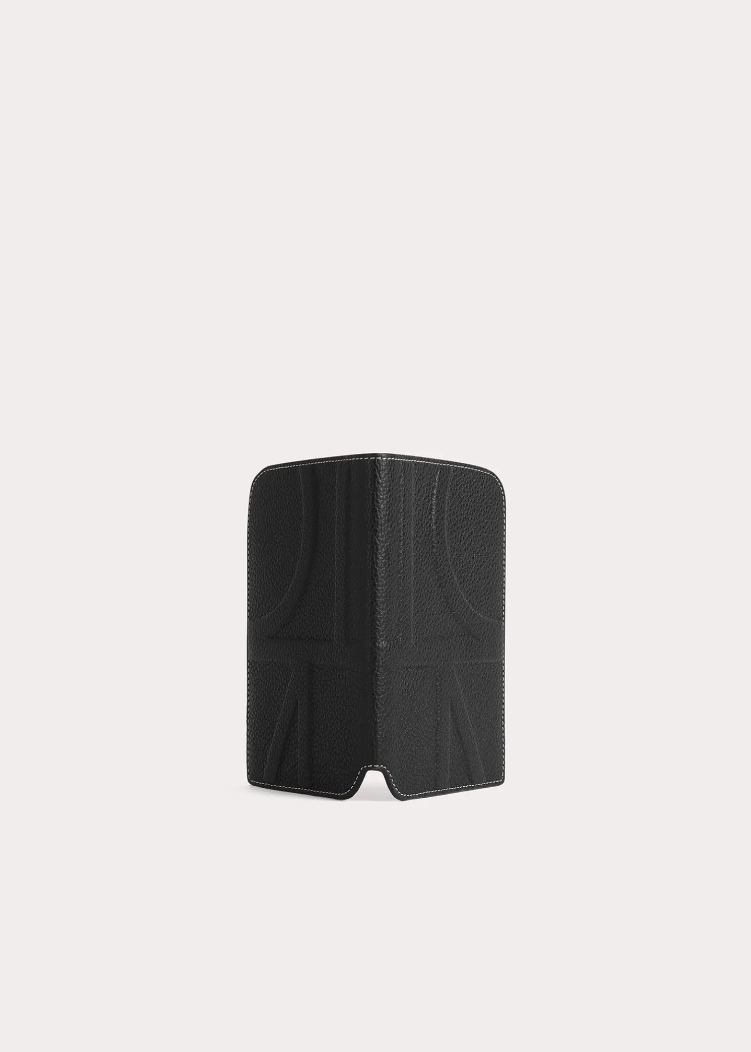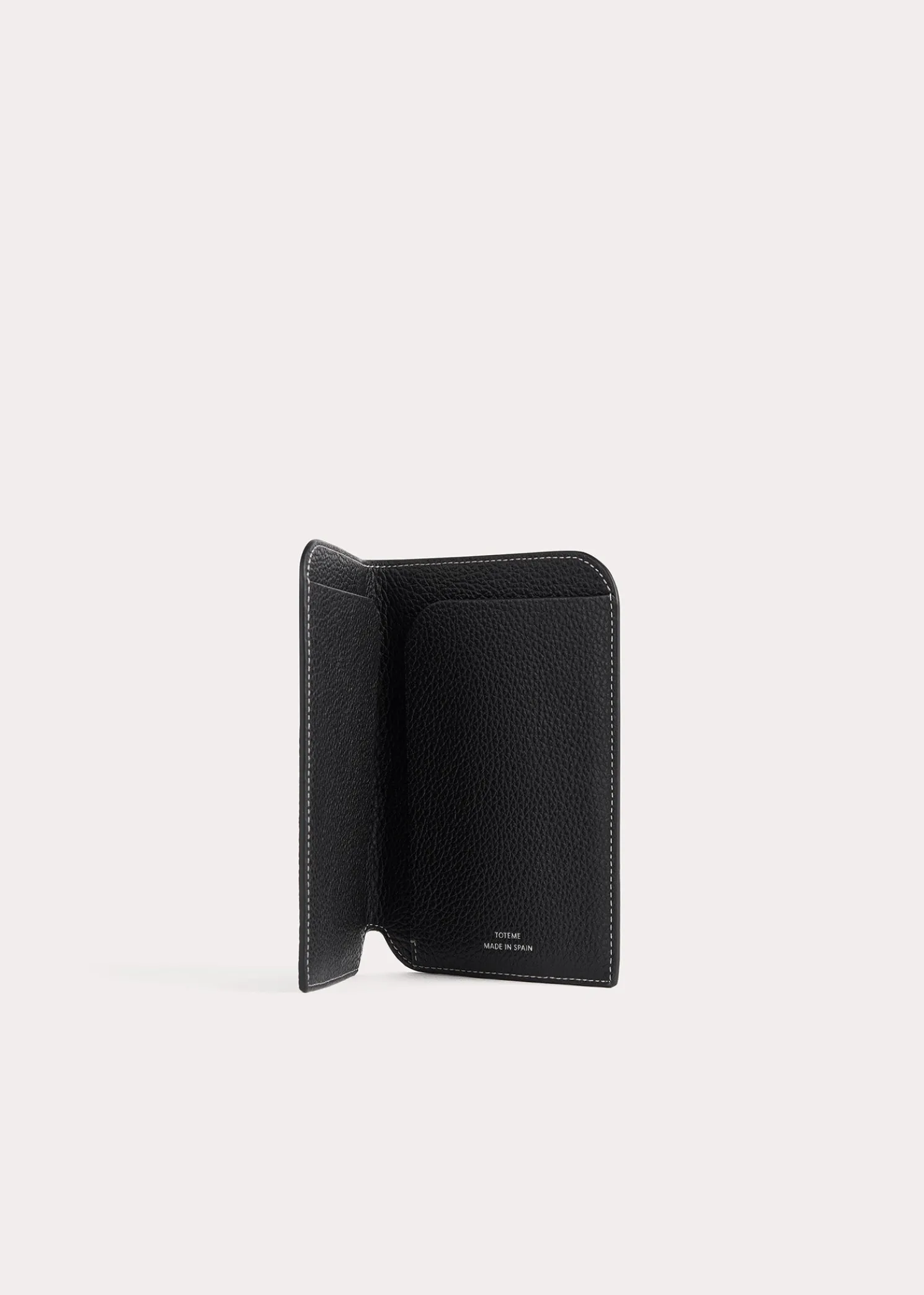 Passport holder embossed with a scaled up version of TOTEME’s distinctive monogram. It’s made in Spain from fine pebble-grained leather accented with a minimalist silver foil logo. Carry it in your purse during long-haul trips.