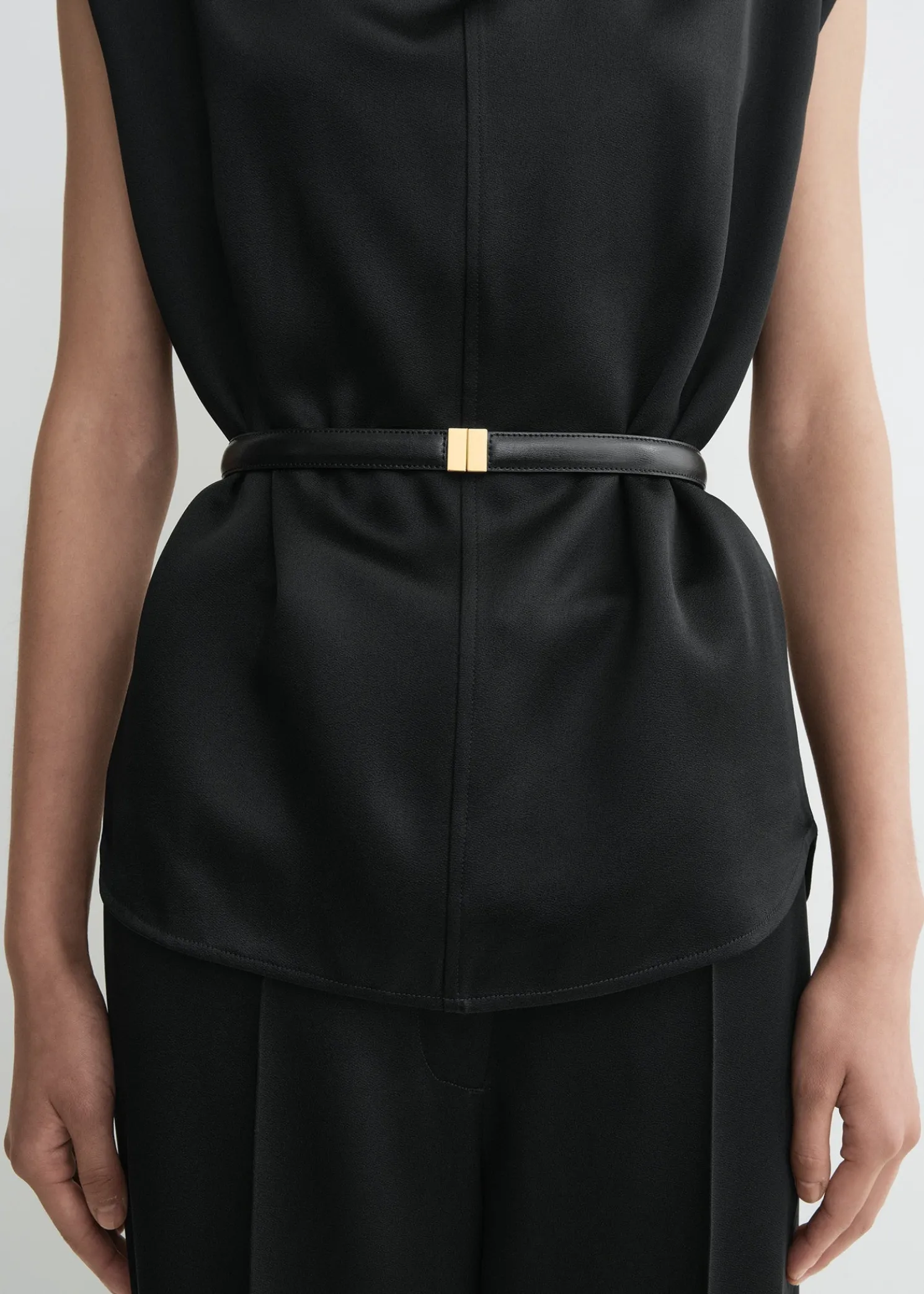 Made in Italy from softly textured Palmellatta leather, this new TOTEME belt is accented with a gold-tone metal slide clasp matching the Belted bucket bag. Cinch it over a shearling top for contrast.