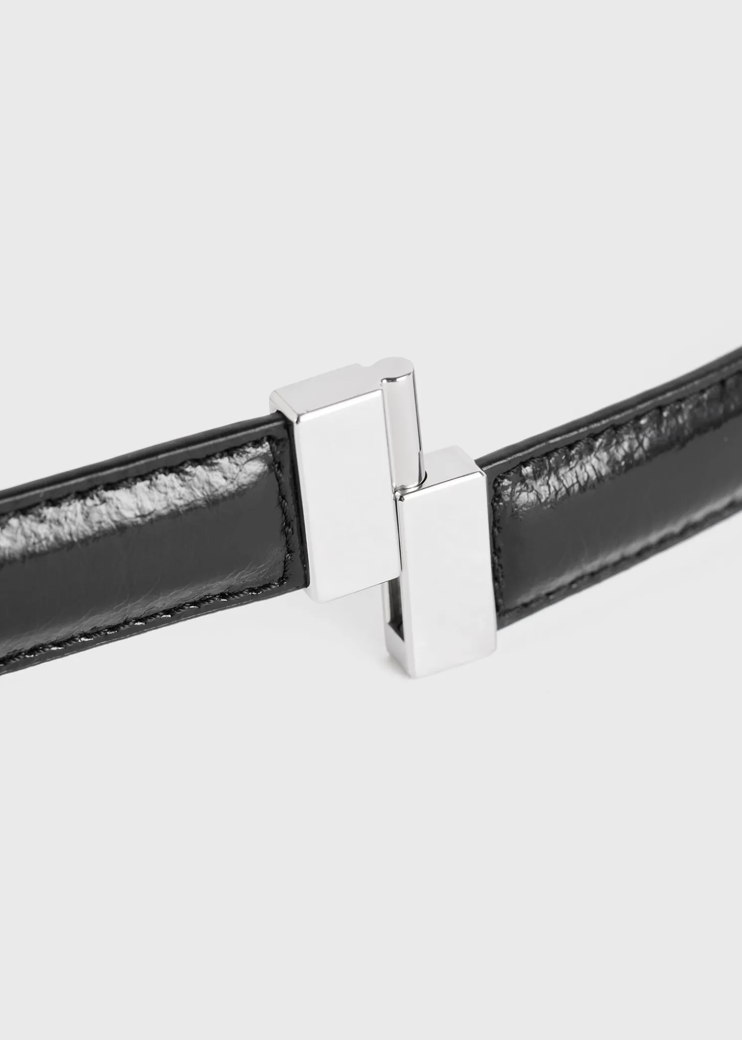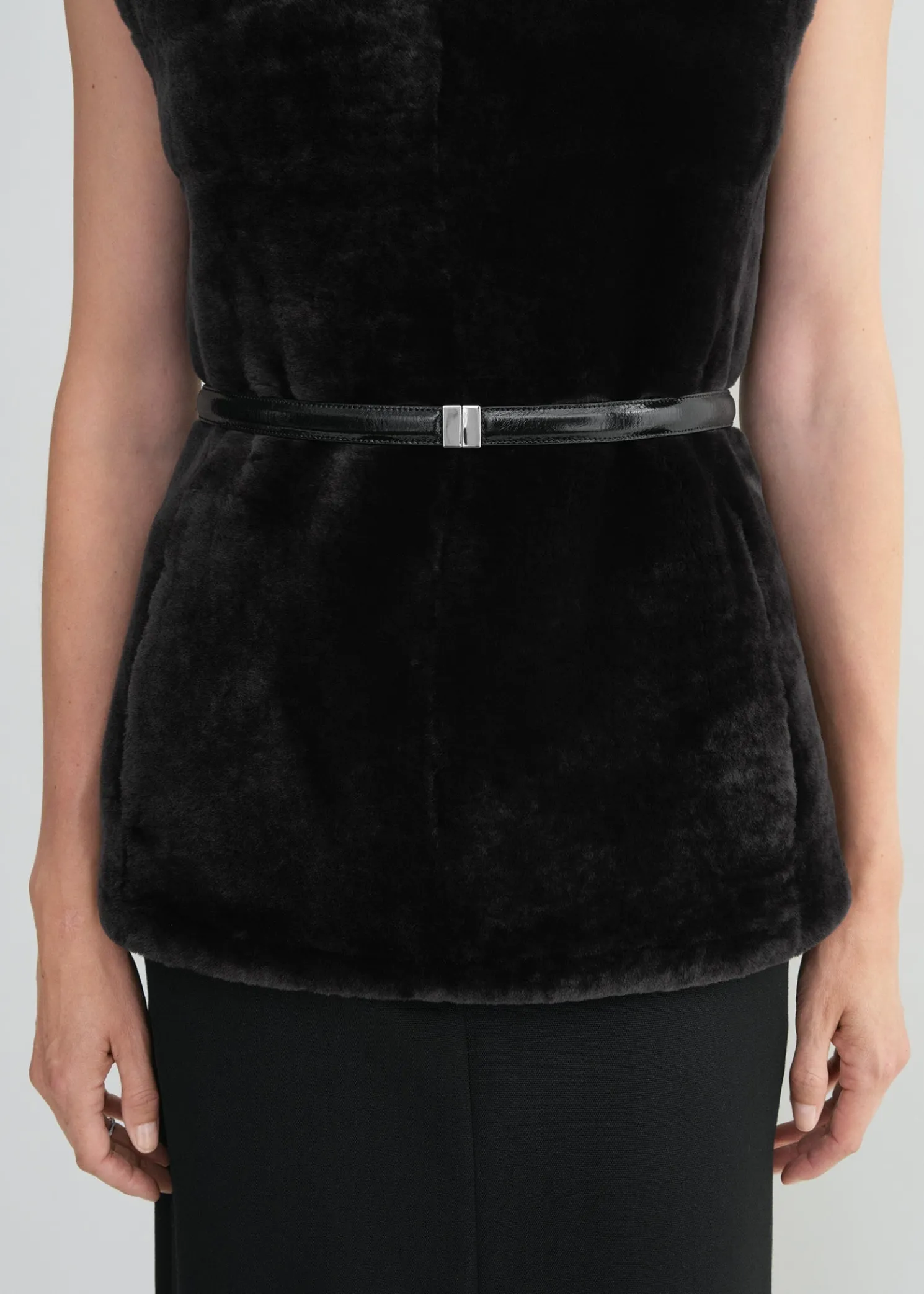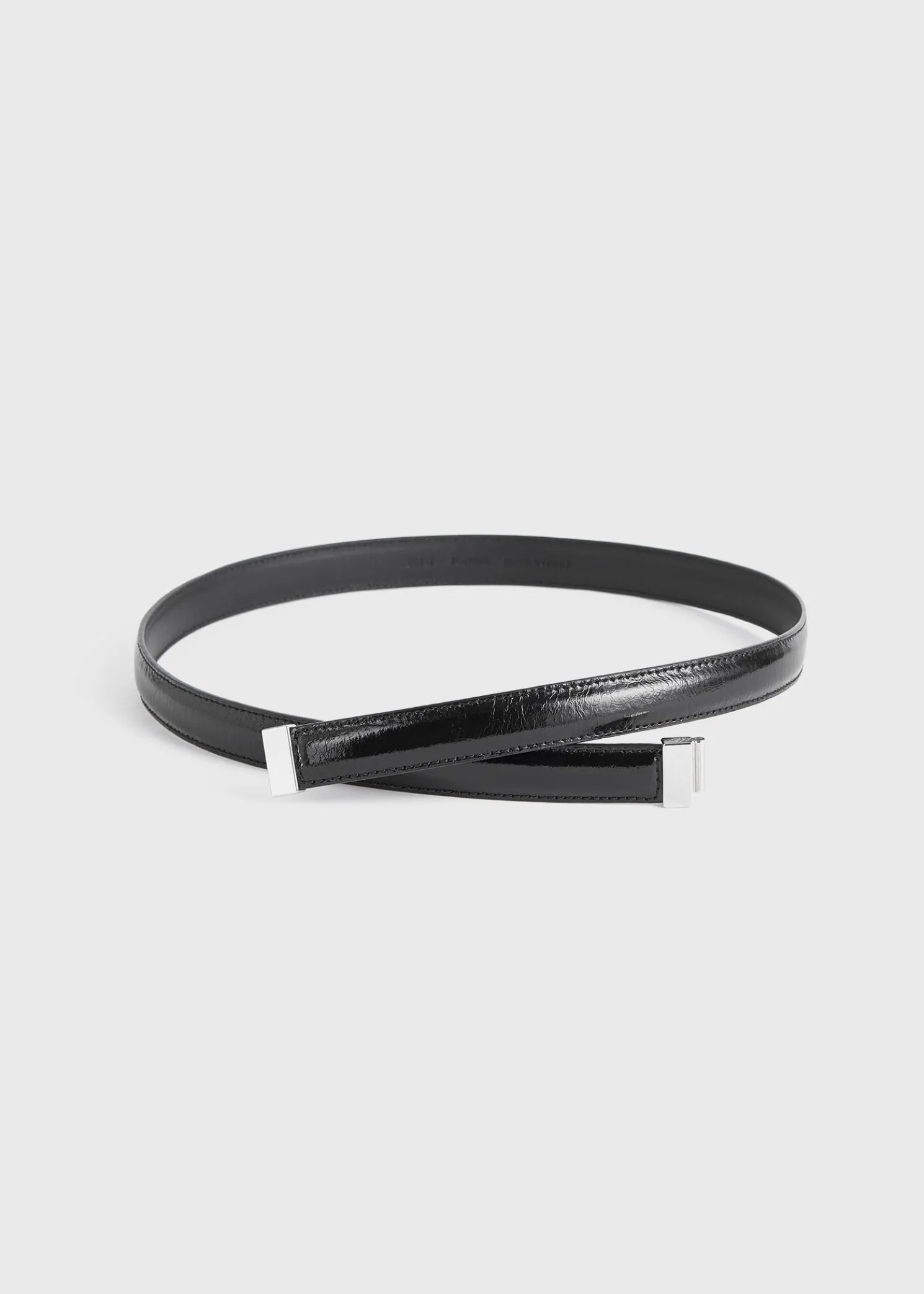 Made in Italy from shiny Naplack leather, this new TOTEME belt is accented with a silver-tone metal slide clasp matching the Belted bucket bag. Cinch it over a shearling top for contrast.