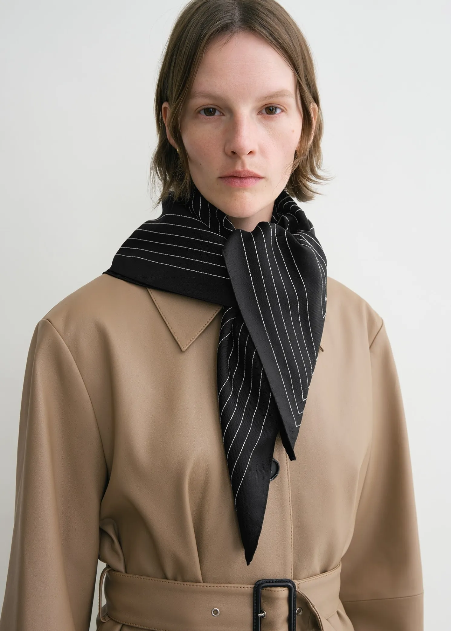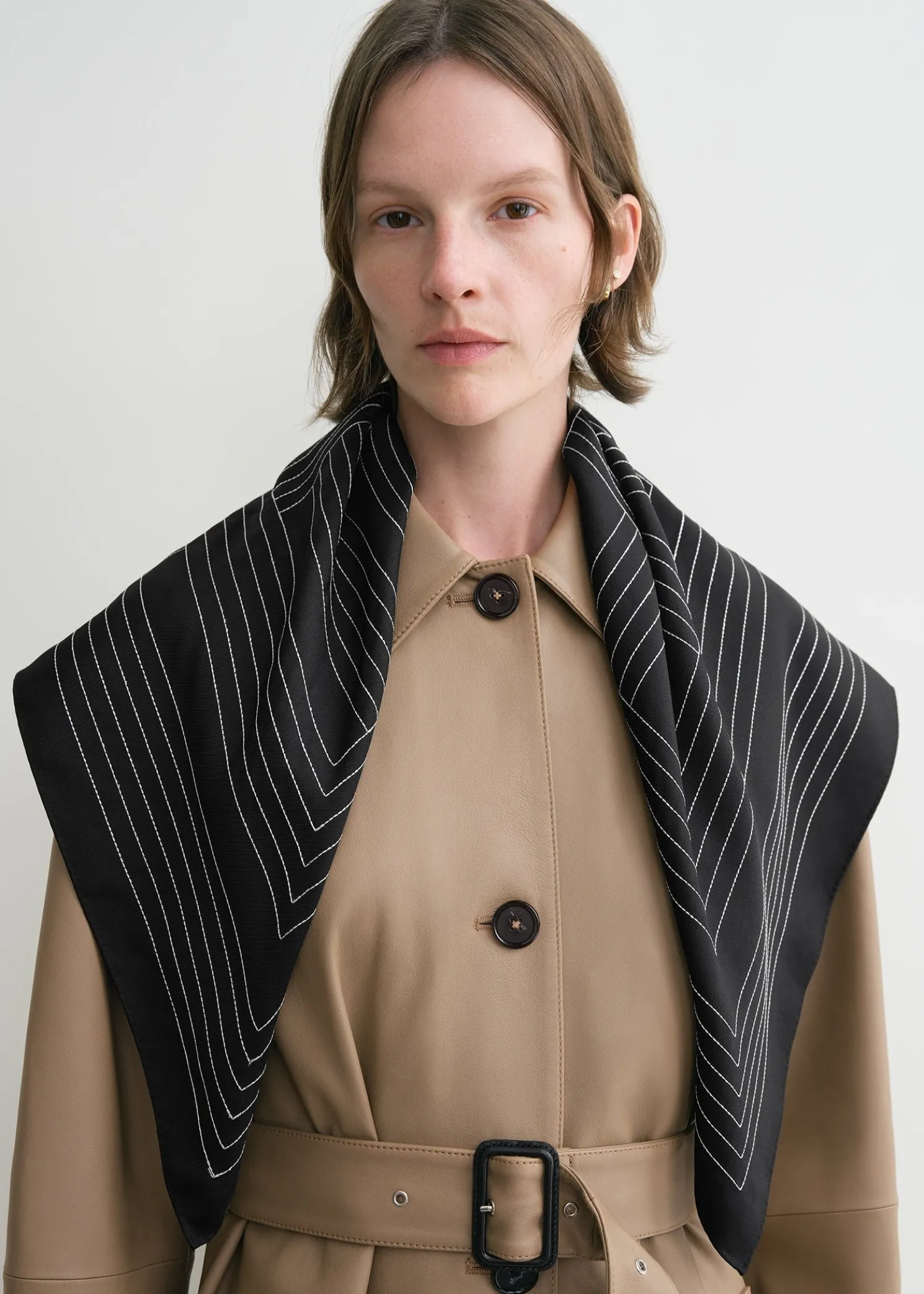 nnLarge TOTEME silk scarf measuring 80x80cm and embroidered with a contrasting crème monogram. Wear it around your neck or over your shoulders.
