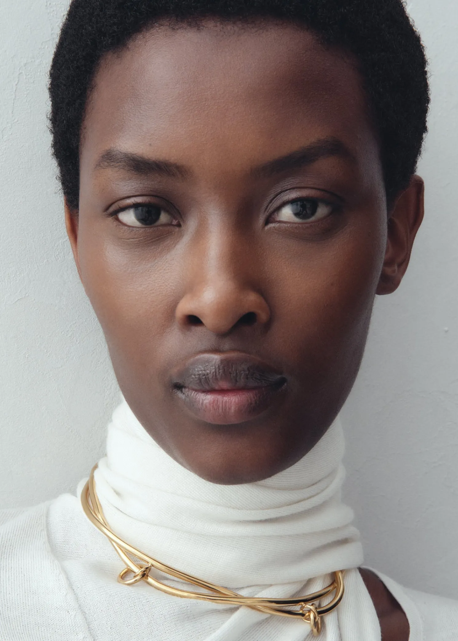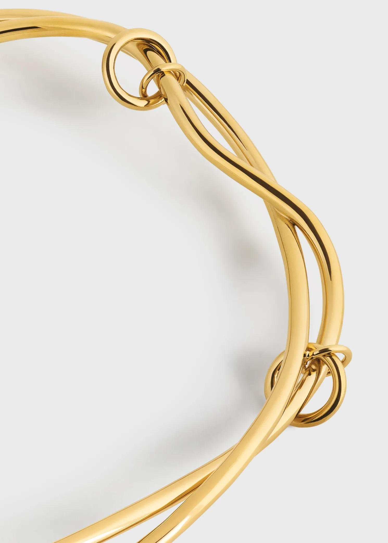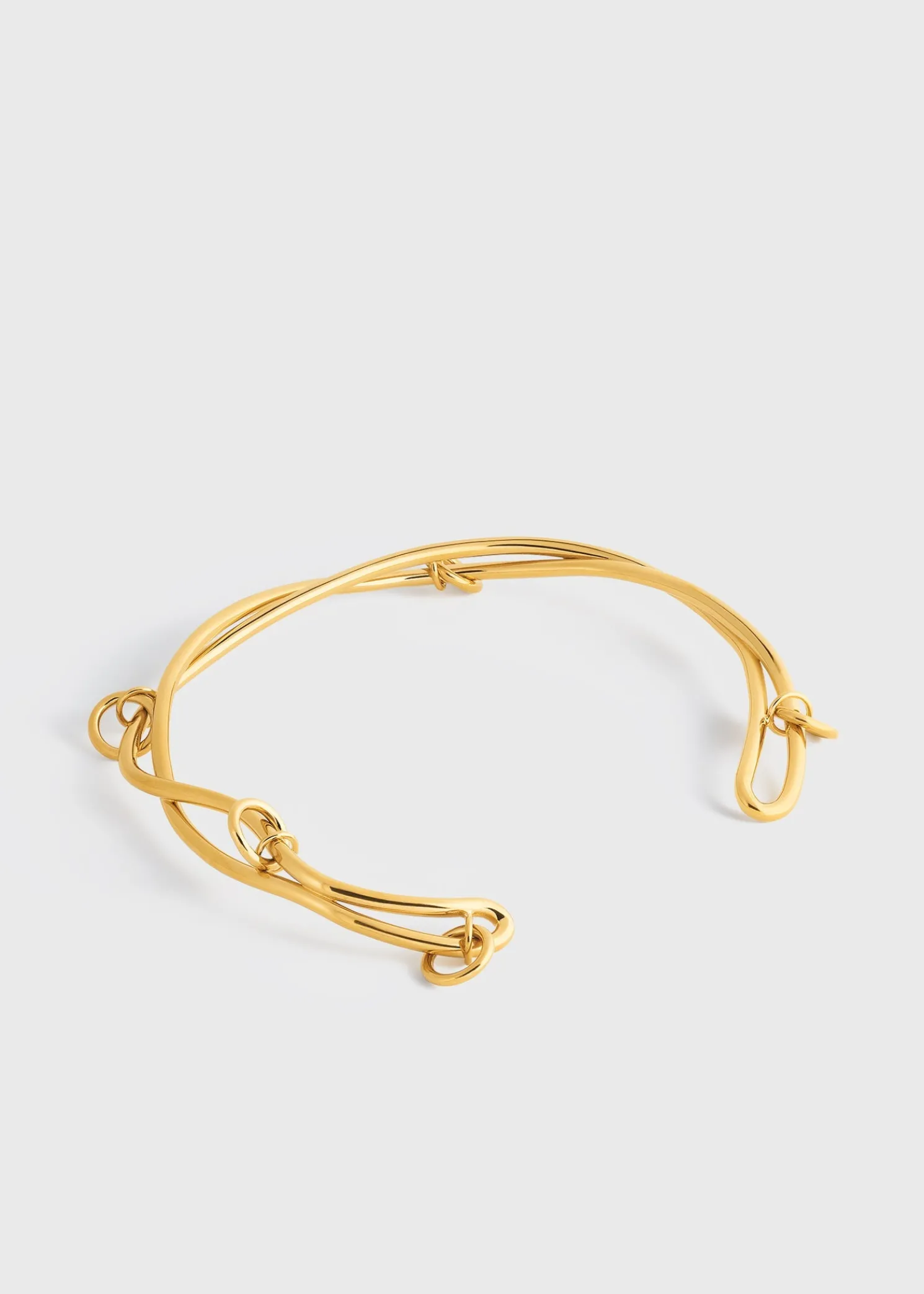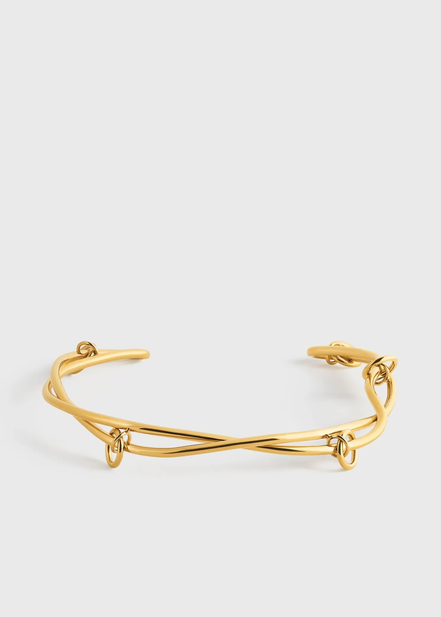 TOTEME collar crafted in Italy with a sculptural swirling pattern that brings to mind intertwining vines. Made from polished gold-plated brass, it has multiple rings that create a charming clinking sound as you move.